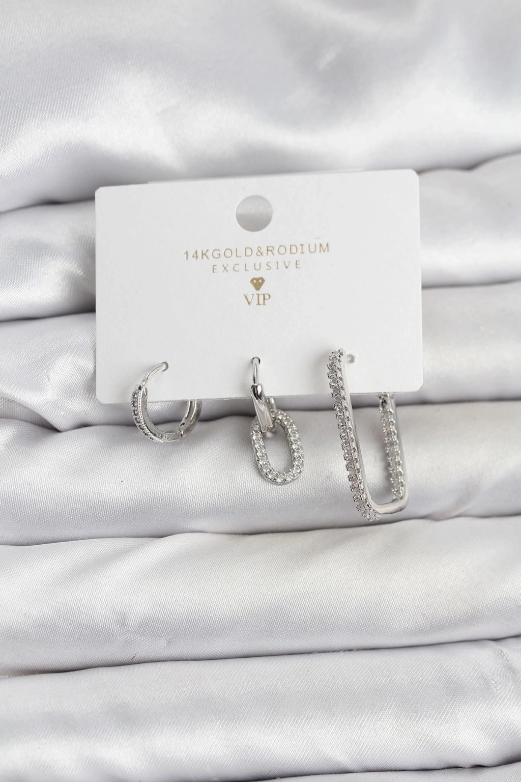 Erb Gümüş Renk Zirkon Taşlı 3'lü Kadın Küpe Seti