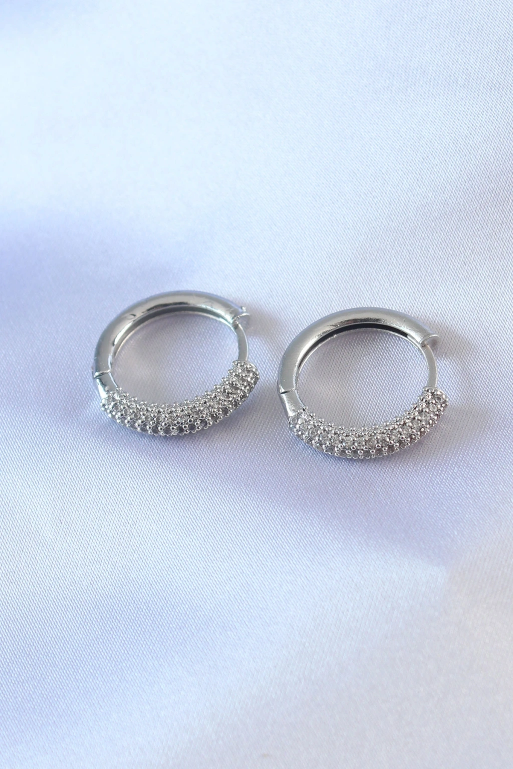 Erb Gümüş Renk Zirkon Taşlı Halka Model Pirinç Kadın Küpe