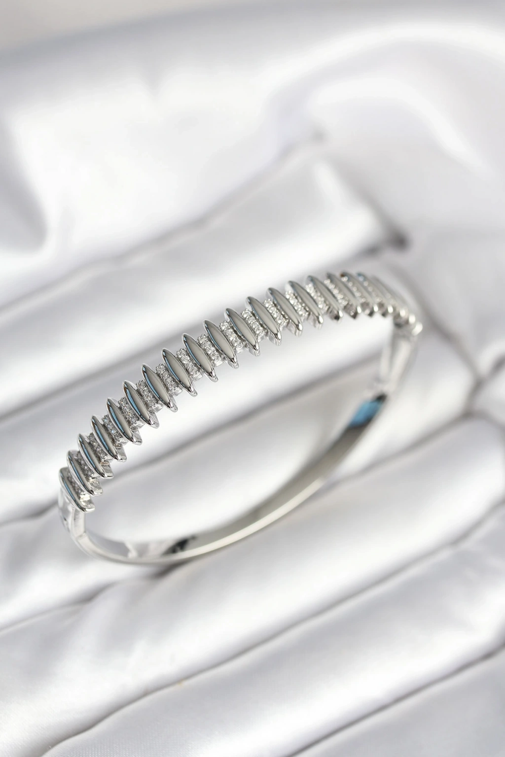 Erb Gümüş Renk Zirkon Taşlı Pirinç Kadın Kelepçe