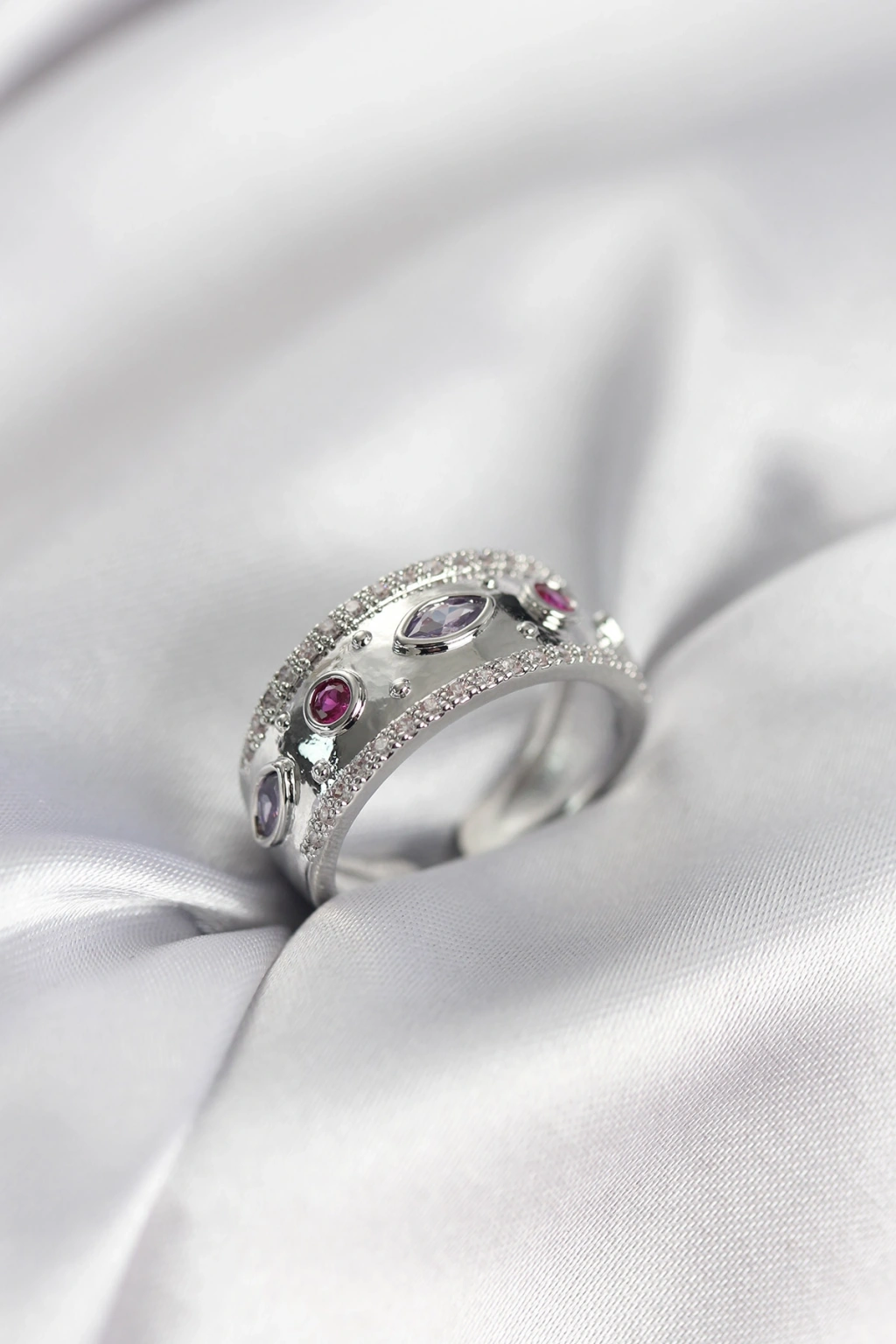 Erb Gümüş Renk Zirkon Taşlı Vintage Kadın Yüzük