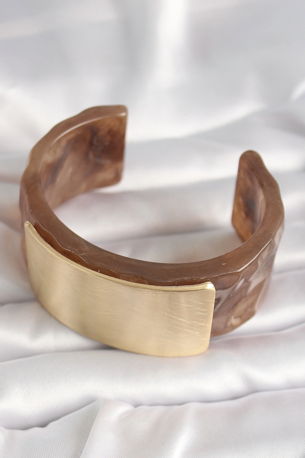 Erb Kahverengi Mermer Desen Akrilik Platik Gold Dikdörtgen Plaka Model Vintage Kadın Bilezik
