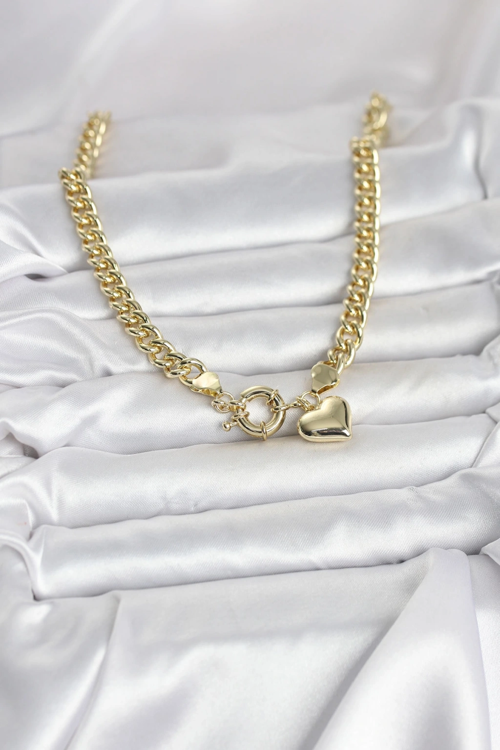 Erb Kalp Detaylı Gold Renk Pirinç Kadın Kolye