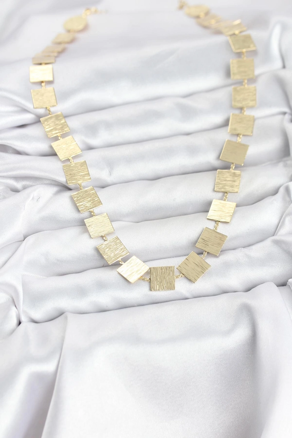 Erb Kare Plaka Model Gold Renk Kadın Kolye