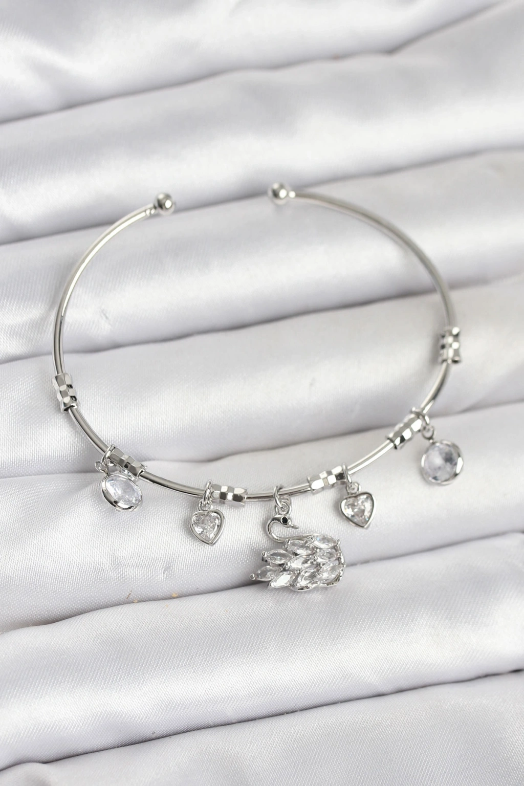 Erb Kuğu Charmlı Gümüş Renk Kadın Bileklik
