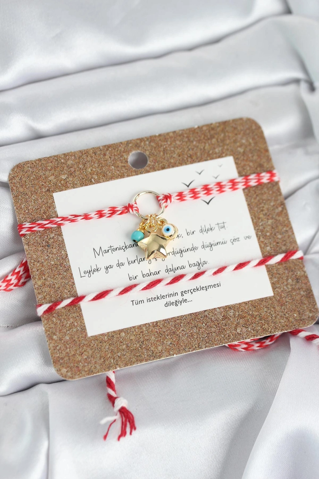 Bileklikler asansörlü makromedir. Objelerdeki renkler karışık renkte gönderilebilir.Martenicka Hikâyesi ve KökeniMartenicka geleneği, baharın gelişi, doğanın uyanışı ve iyilik–sağlık dilekleri ile ilişkilidir.En yaygın anlatıya göre:Balkan mitolojisinde “Baba Marta” (Mart Ana) adında bir figür bulunur.Baba Marta’nın yüzü neşeli olduğunda hava ısınır,Kızdığında ise yeniden soğur veya kar yağar.İnsanlar Baba Marta’nın yüzünü güldürmek, baharı çağırmak ve kötü ruhları uzak tutmak için kırmızı-beyaz ipten Martenicka takarlar.