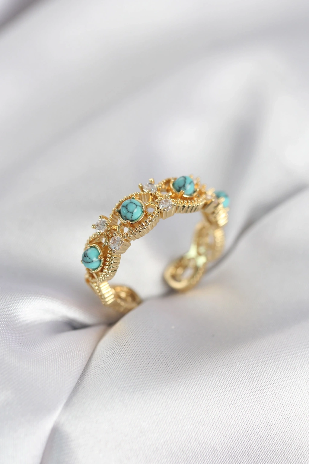 Erb Mavi Taşlı Gold Renk Vintage Kadın Yüzük