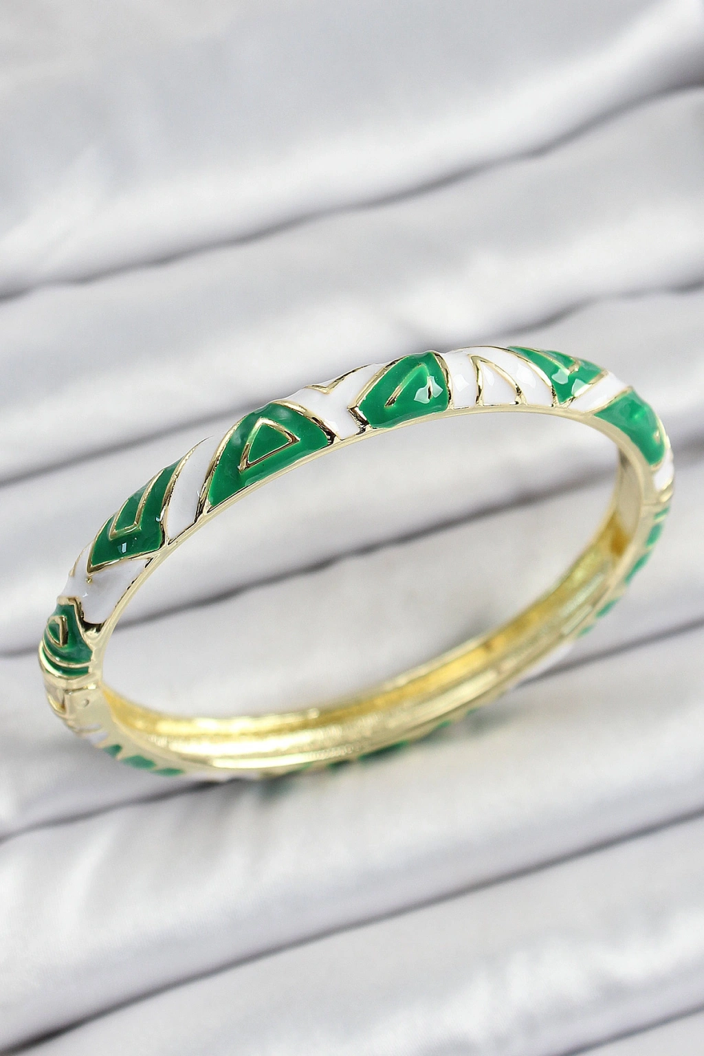 Erb Mineli Pirinç Yeşil Beyaz Motifli Kadın Kelepçe