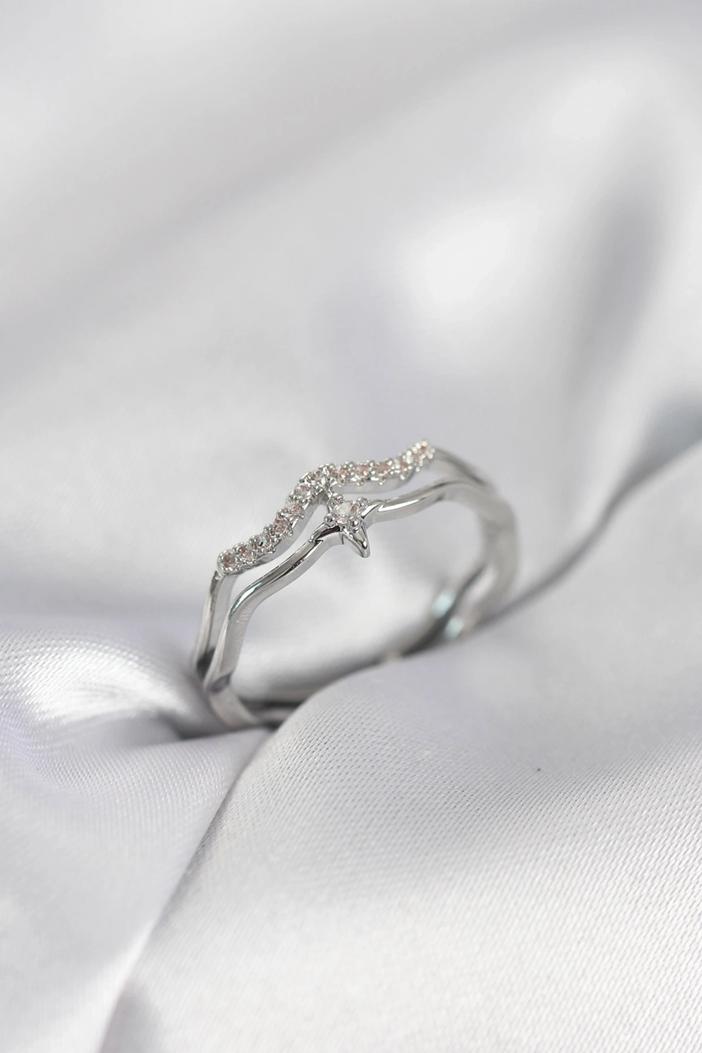 Erb Minimal Yıldız Model Gümüş Renk Zirkon Taşlı Kadın Yüzük