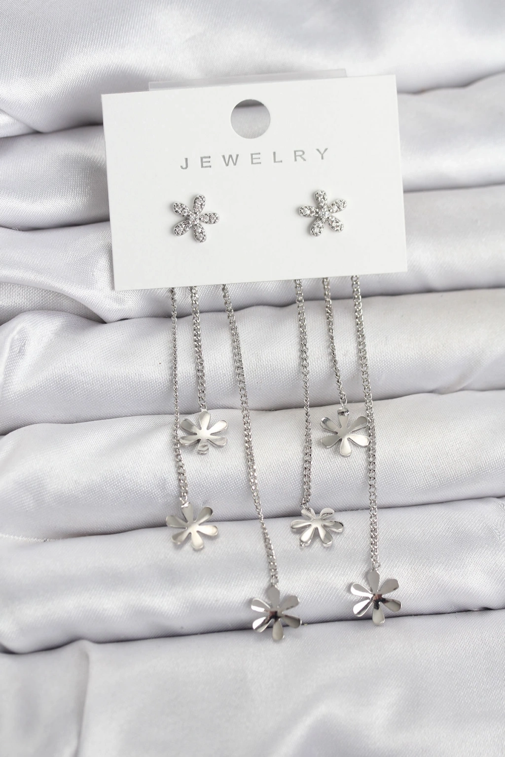 Erb Papatya Model Gümüş Renk Pirinç Sallantılı Kadın Küpe