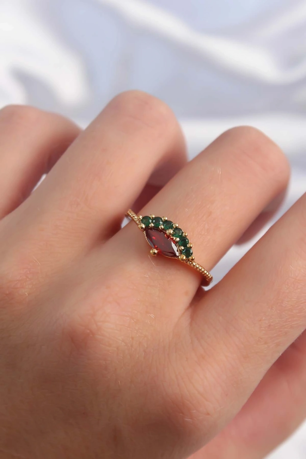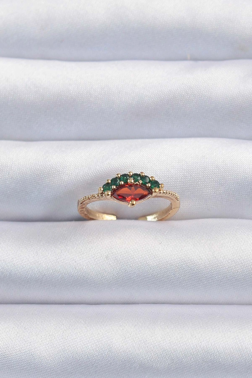 Erb Pirinç Altın Renk Renkli Zirkon Taşlı Ayarlanabilir Karpuz Model Yüzük