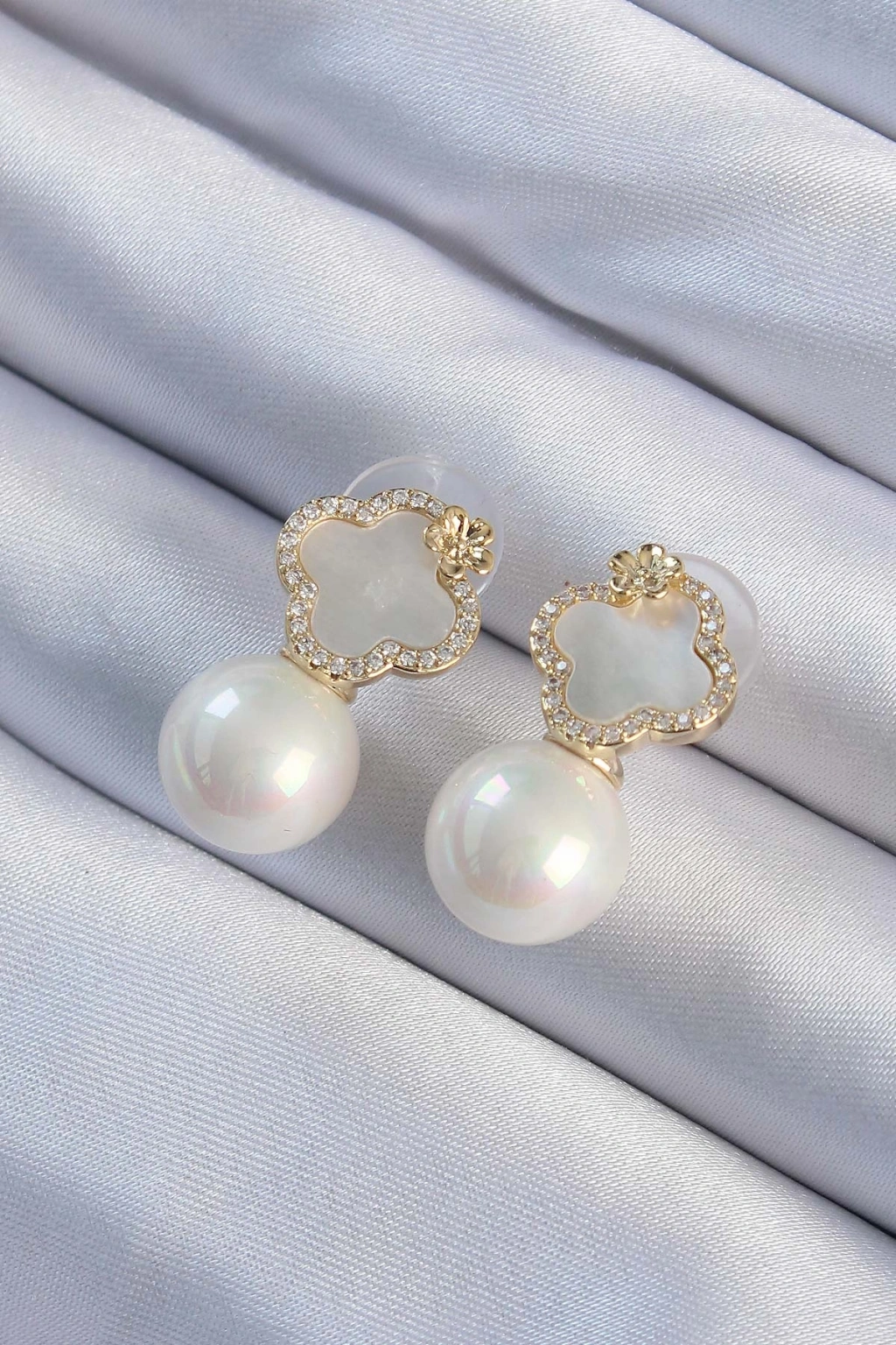 Erb Pirinç Altın Renk Zirkon Taşlı Minimal Çiçek Tasarımlı Kadın Küpe