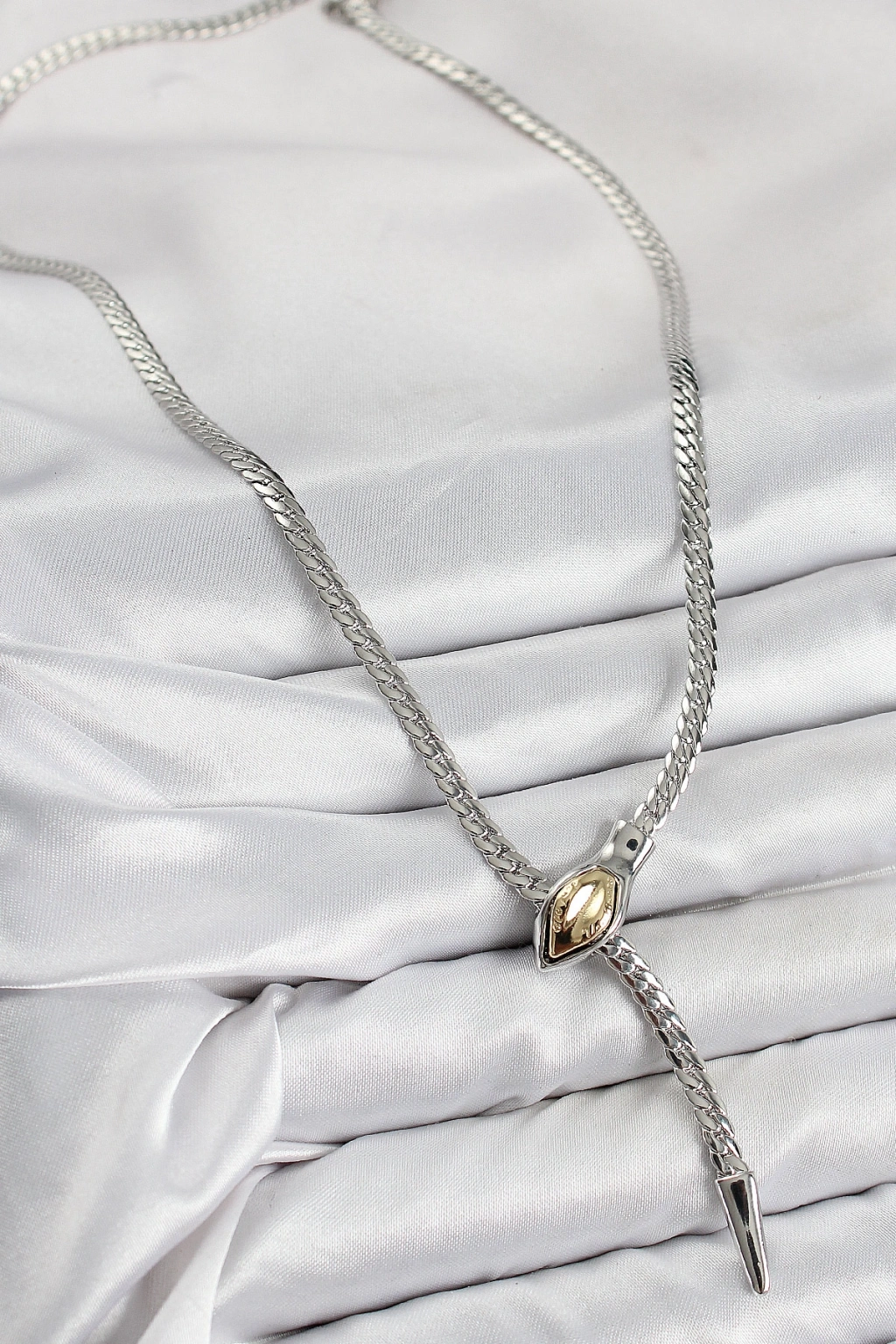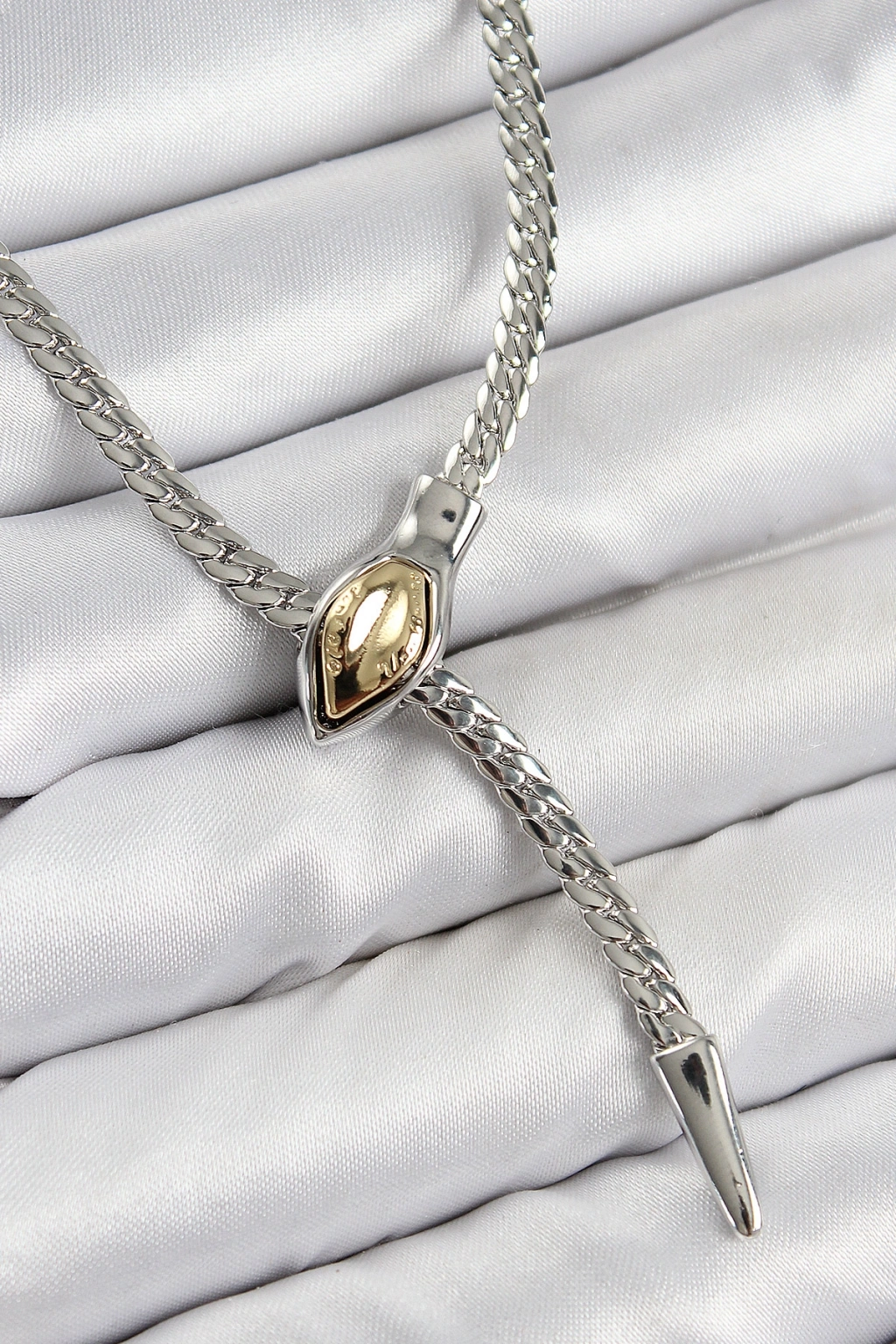 Erb Pirinç Asansörlü Yılan Model Gümüş Renk Kadın Kolye