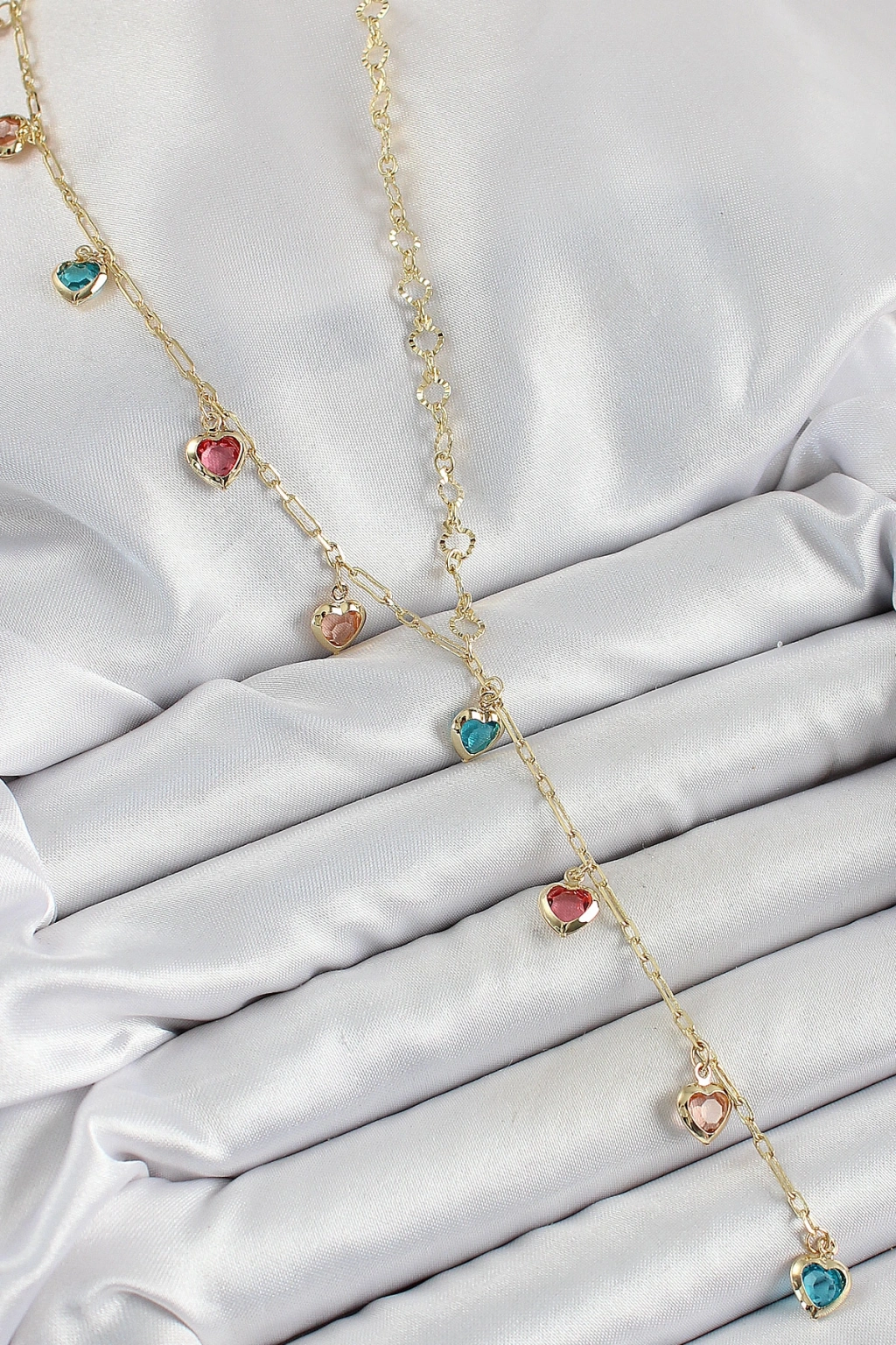 Erb Pirinç Asorti Kalp Model Gold Renk Zirkon Taşlı Y Kolye