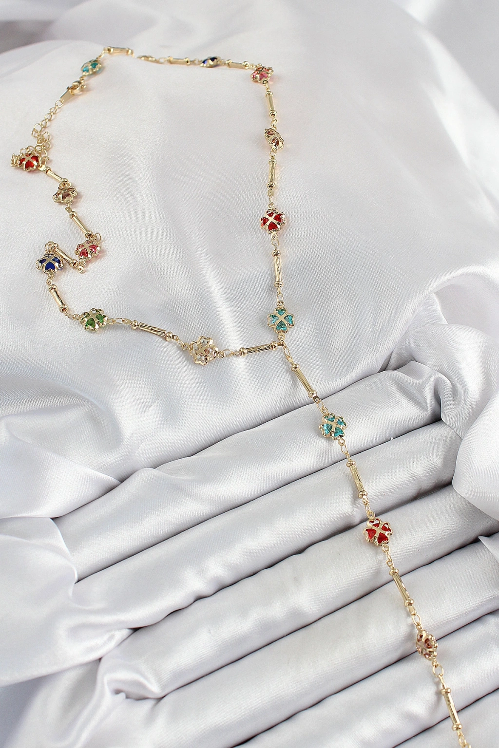 Erb Pirinç Asorti Kalpli Yonca Model Gold Renk Zirkon Taşlı Y Kolye