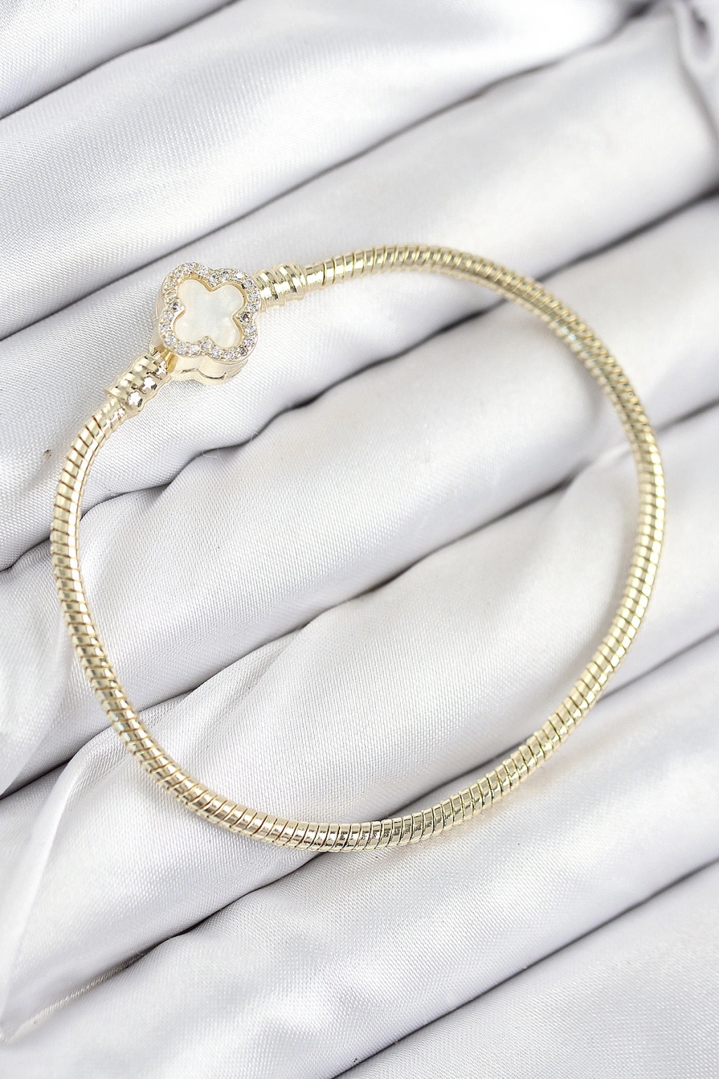 Erb Pirinç Charm Zirkon Taşlı Yonca Model Gold Renk Kadın Bileklik