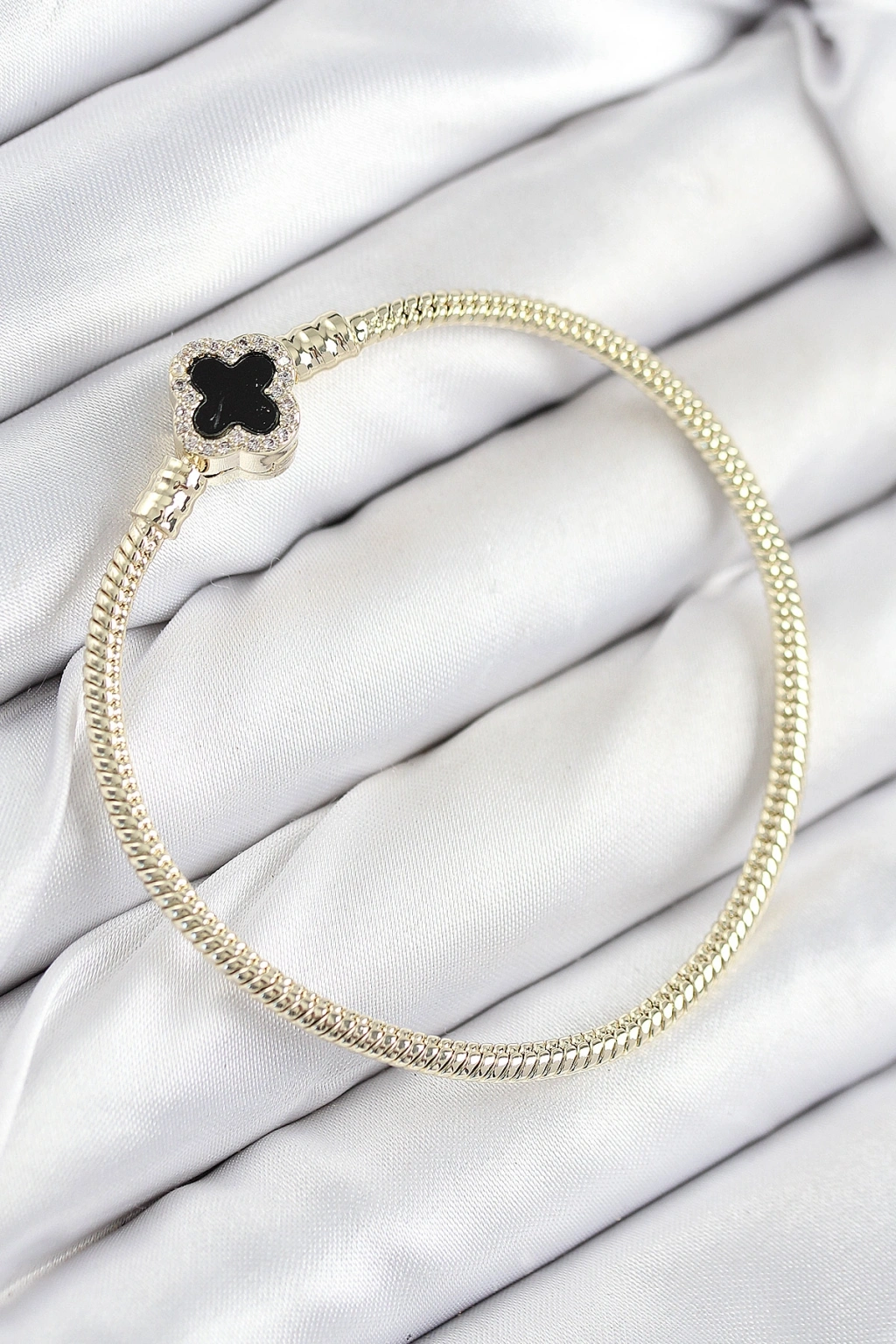 Erb Pirinç Charm Zirkon Taşlı Yonca Model Gold Renk Kadın Bileklik