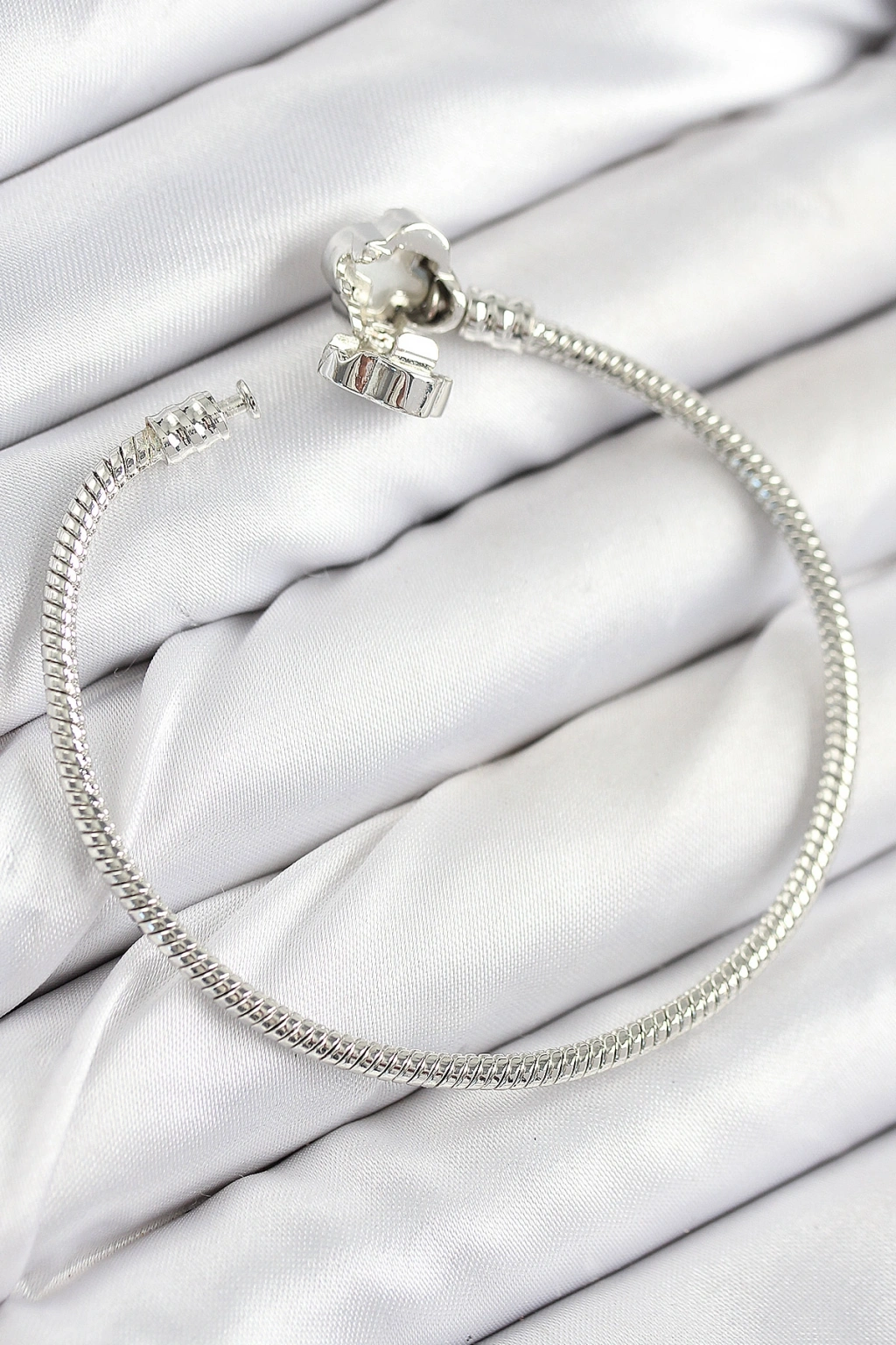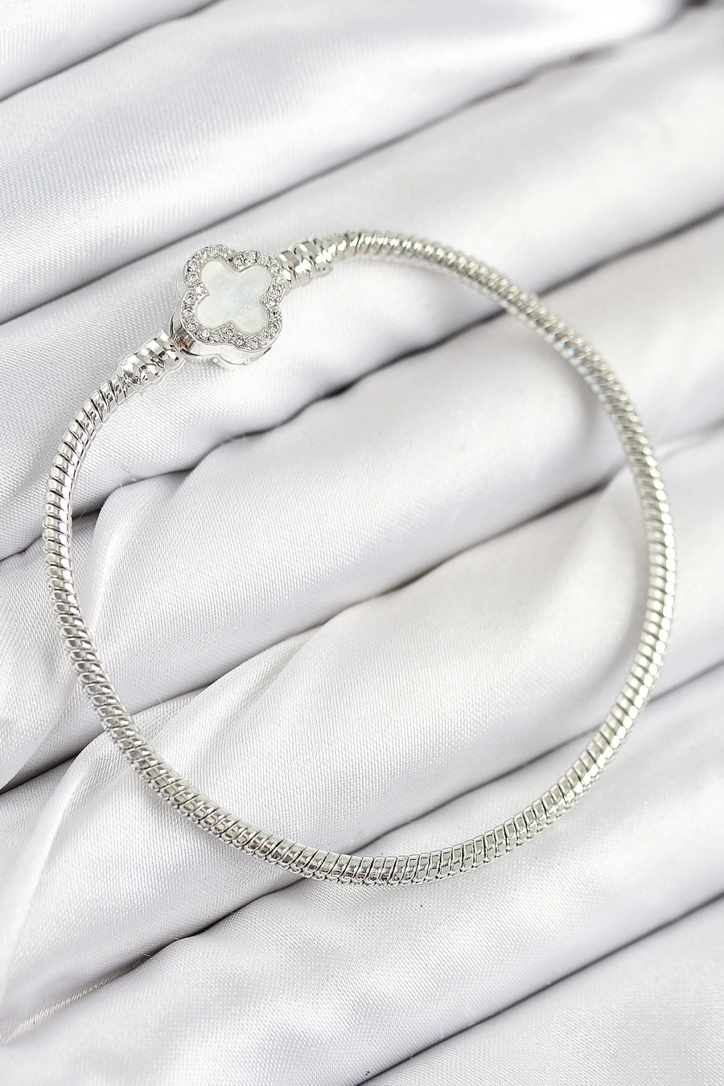 Erb Pirinç Charm Zirkon Taşlı Yonca Model Gümüş Renk Kadın Bileklik