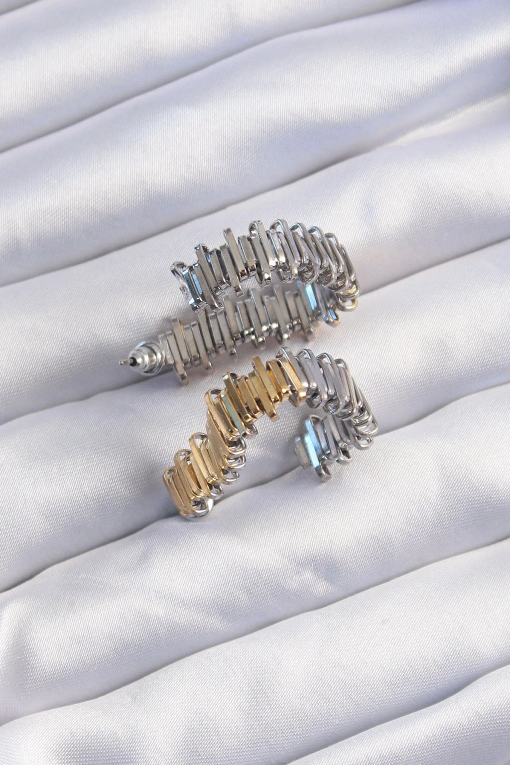 Erb Pirinç Gold Gümüş Renkli Tırtıklı Kalp Küpe