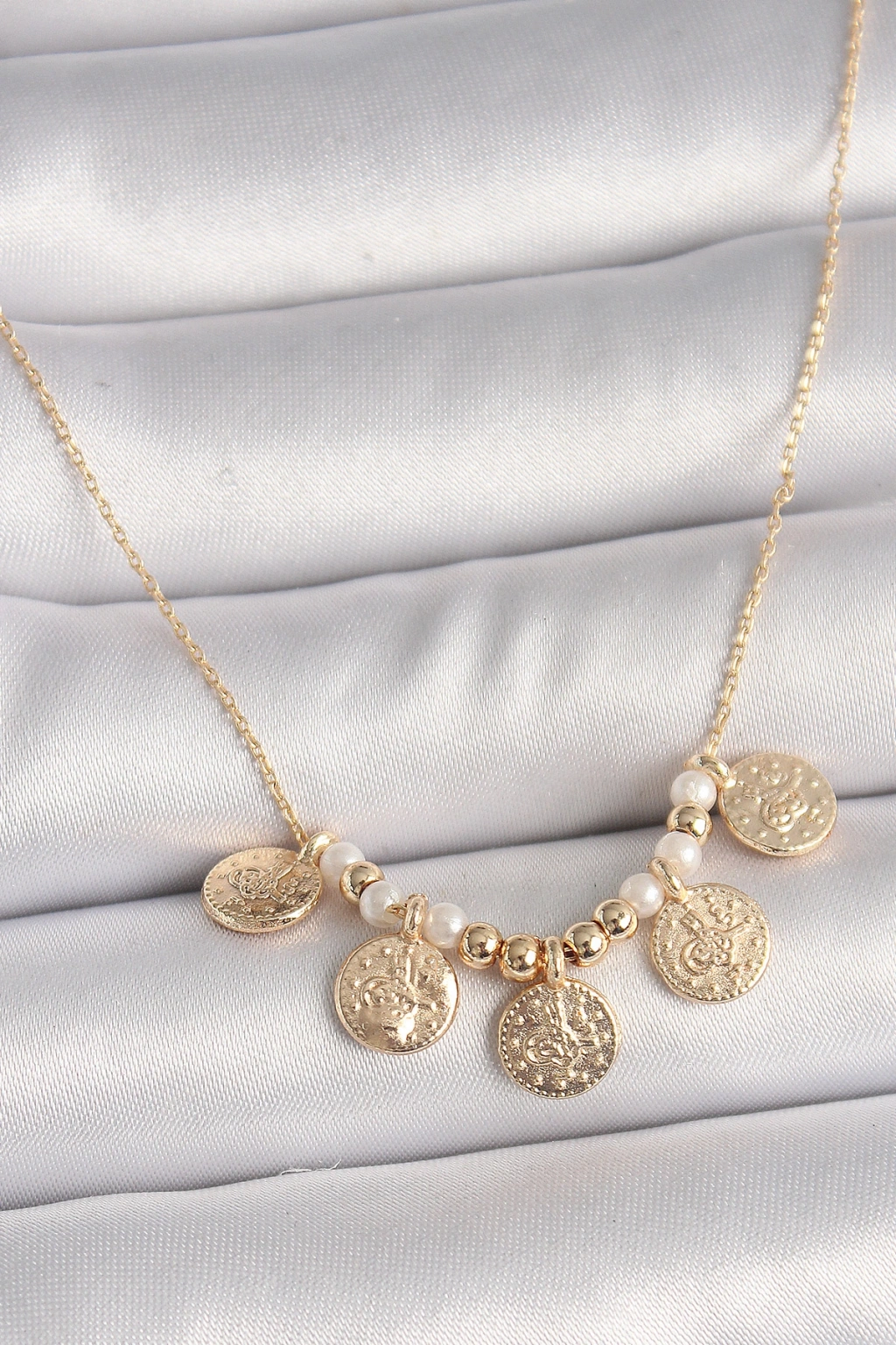 Erb Pirinç Gold Renk 5'Li Osmanlı Tuğra Figür İnci Detay Kadın Kolye