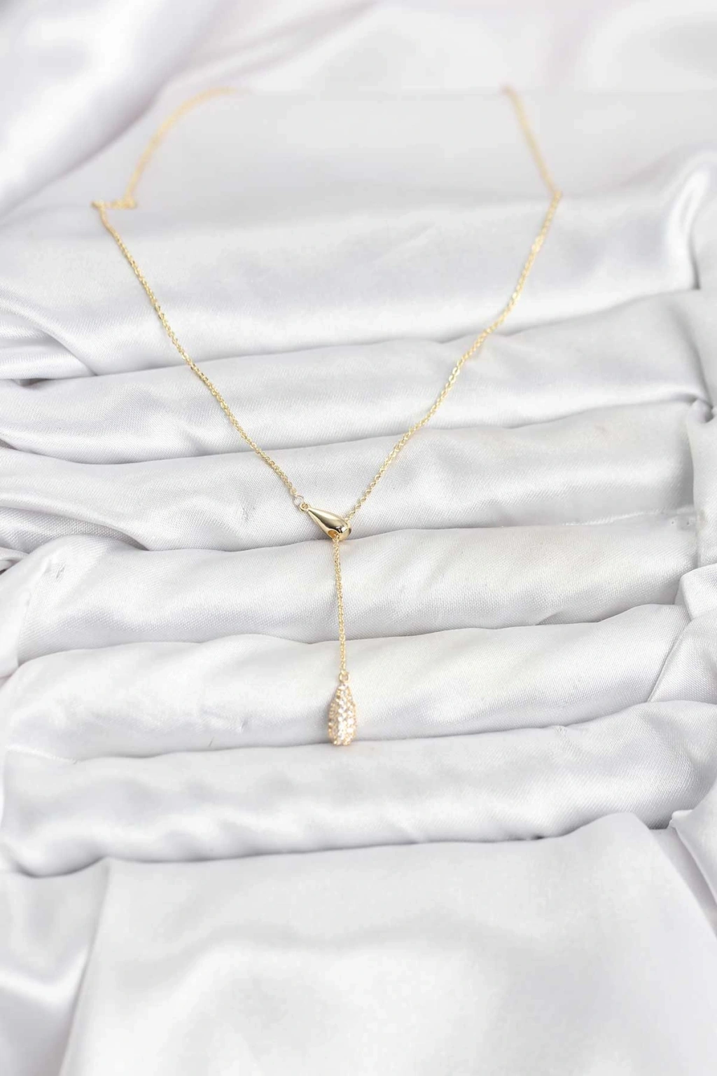 Erb Pirinç Gold Renk Asansörlü Damla Model Kadın Kolye