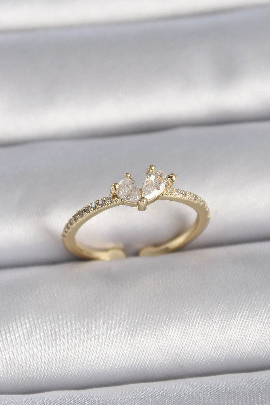 Erb Pirinç Gold Renk Ayarlanabilir Zirkon Taşlı Kalp Model Kadın Yüzük