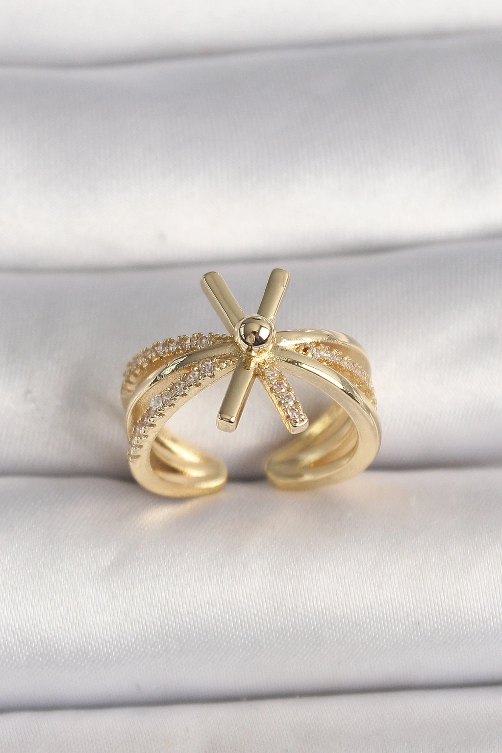 Erb Pirinç Gold Renk Ayarlanabilir Ziron Taşlı Kadın Yüzük