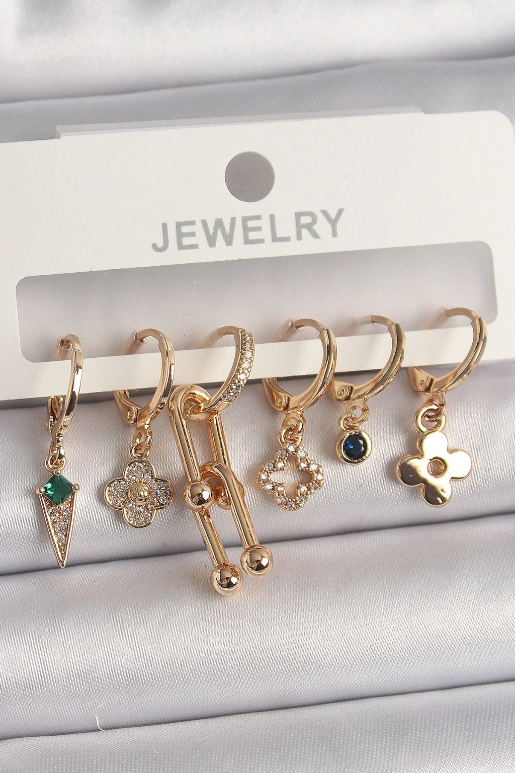 Erb Pirinç Gold Renk Çoklu Figür Kadın Küpe Seti