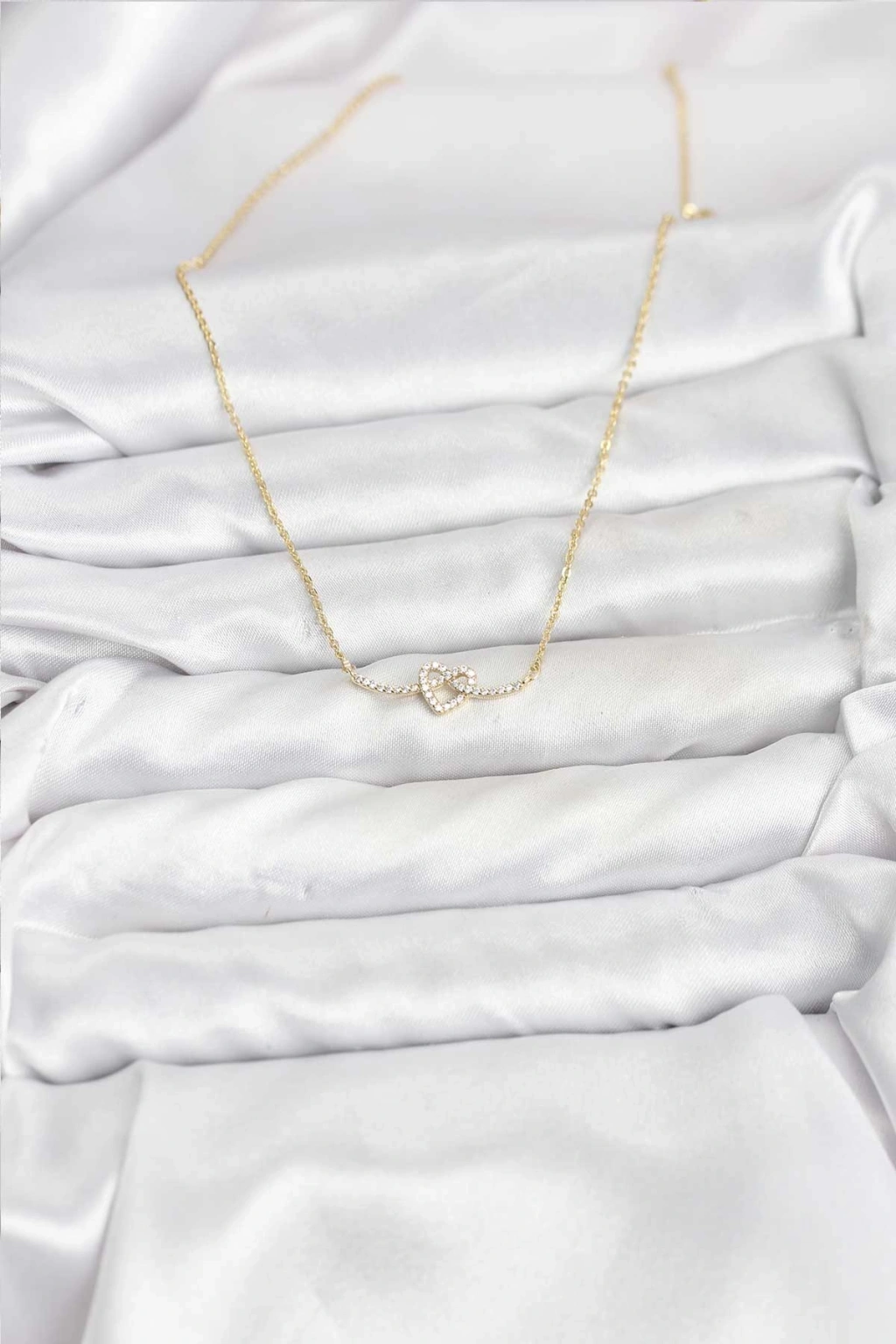 Erb Pirinç Gold Renk Düğüm Kalp Model Kadın Kolye
