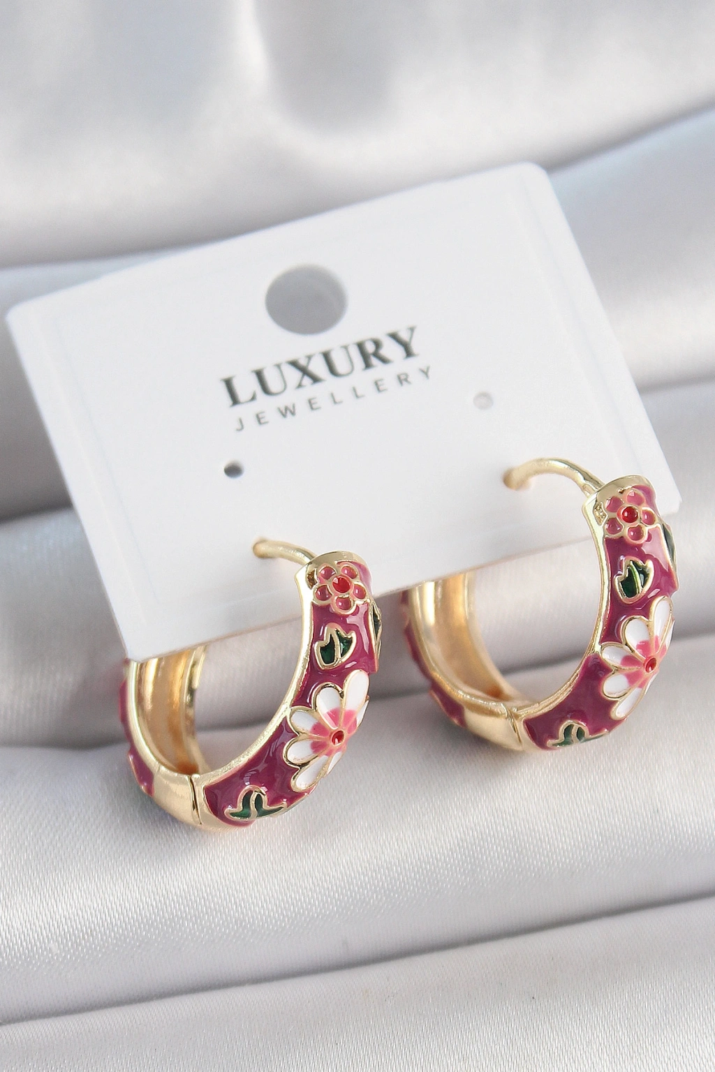 Erb Pirinç Gold Renk Halka Mor Çiçek Mineli Kadın Küpe