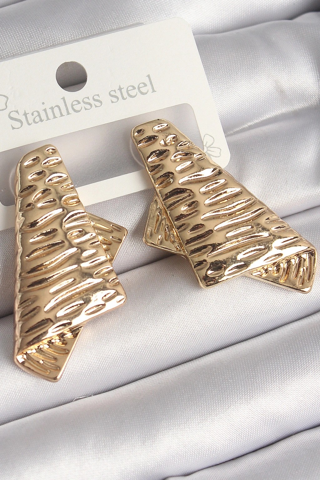 Erb Pirinç Gold Renk İşleme Detaylı Katlanmış Kare Plaka Model Kadın Küpe