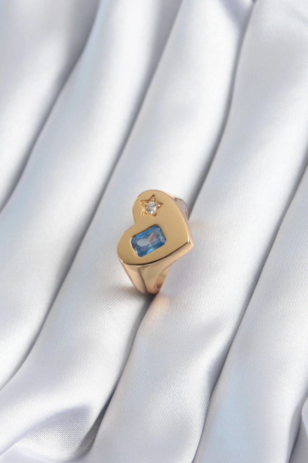 Erb Pirinç Gold Renk Kalp Model Zirkon Taş Yıldız Detay Kadın Yüzük