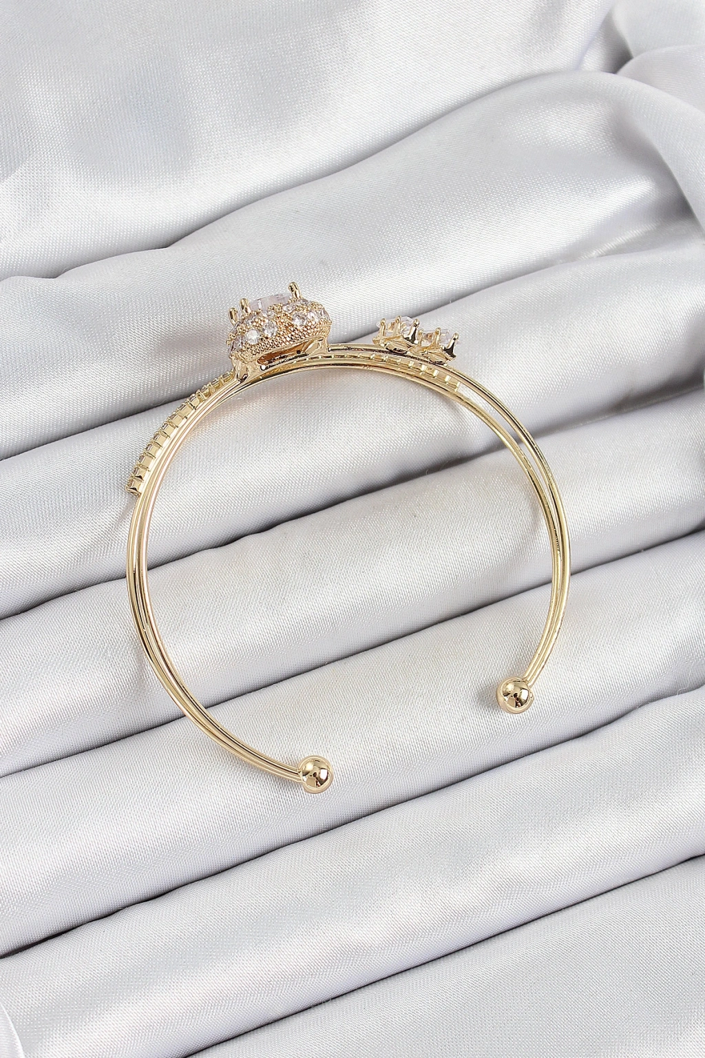 Erb Pirinç Gold Renk Kalpli Zirkon Taşlı Kadın Bileklik