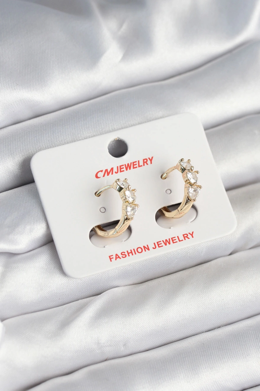 Erb Pirinç Gold Renk Kalpli Zirkon Taşlı Kadın Küpe