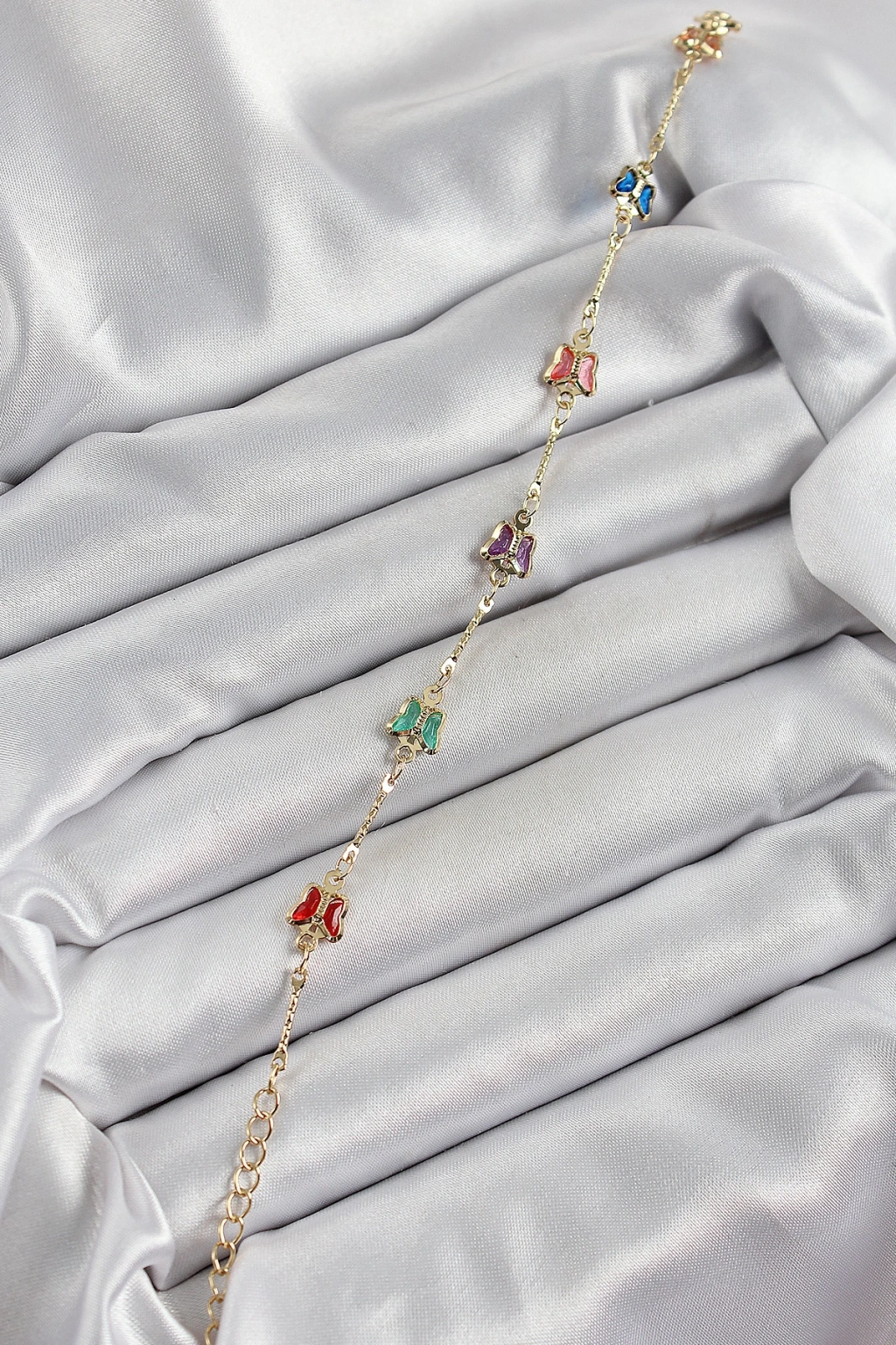 Erb Pirinç Gold Renk Karışık Renk Kelebek Zirkon Taşlı Kadın Bileklik