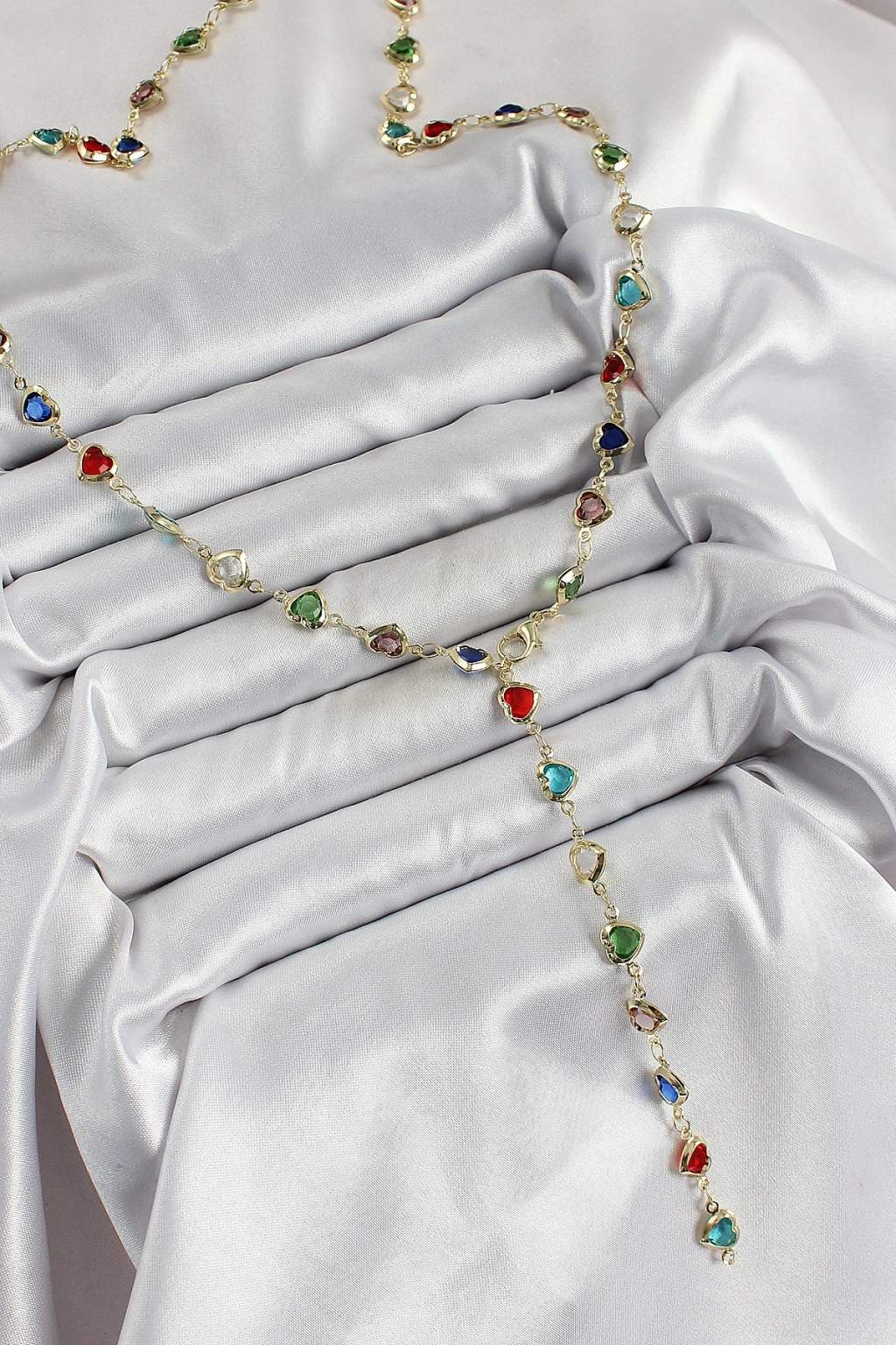 Erb Pirinç Gold Renk Karışık Renk Zirkon Taşlı Kalpli Y Kadın Kolye