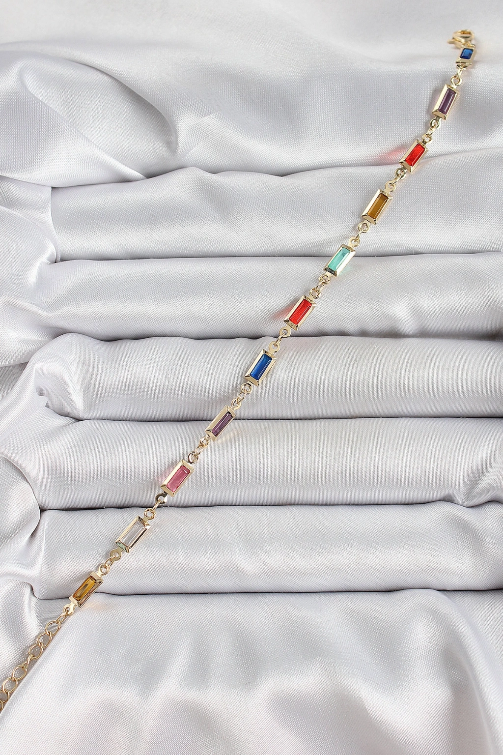 Erb Pirinç Gold Renk Karışık Renkli Kare Zirkon Taşlı Kadın Bileklik