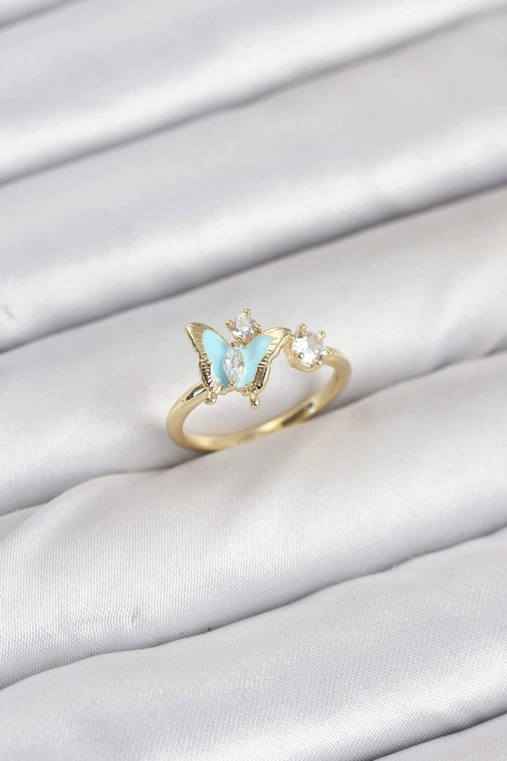 Erb Pirinç Gold Renk Kelebek Model Kadın Yüzük