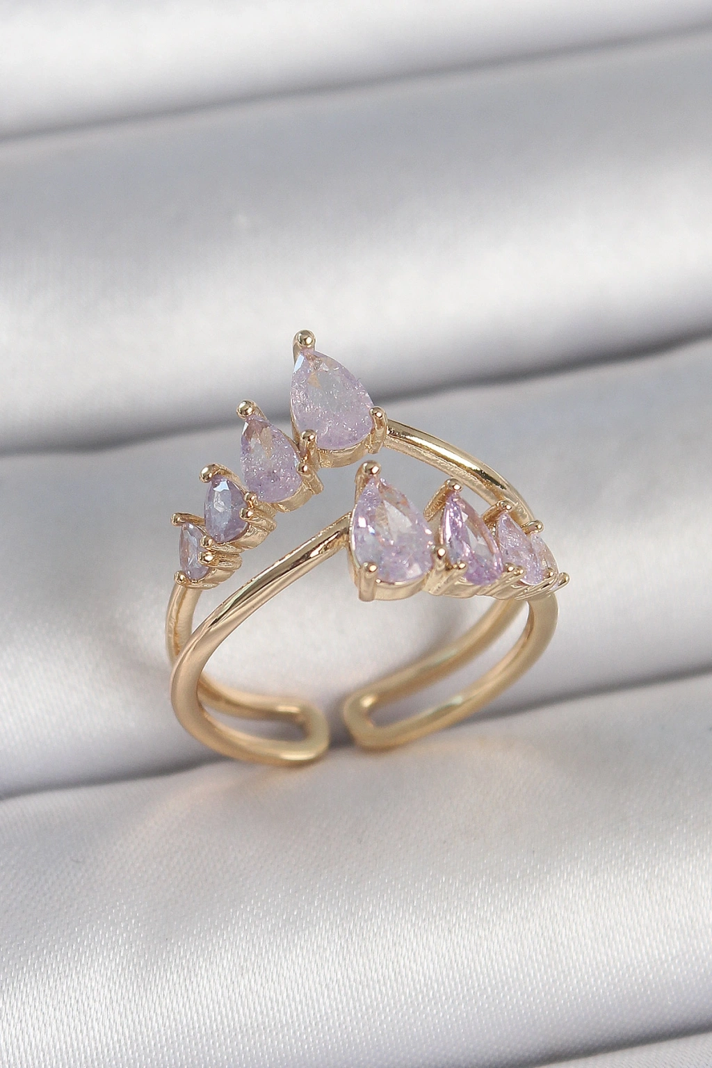 Erb Pirinç Gold Renk Mor Damla Zirkon Taşlı Taç Model Kadın Yüzük