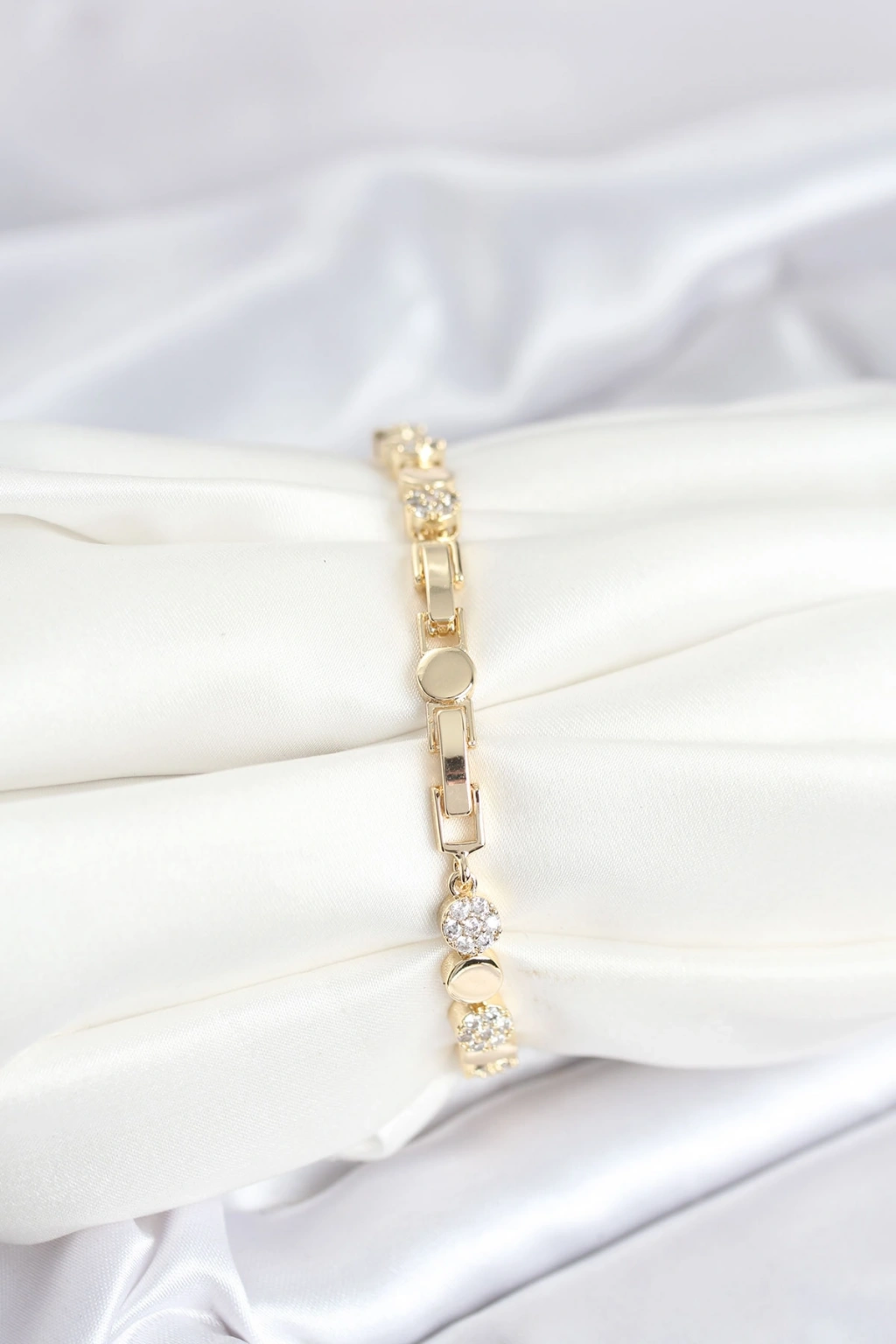 Erb Pirinç Gold Renk Nokta Model Zirkon Taşlı Kadın Bileklik