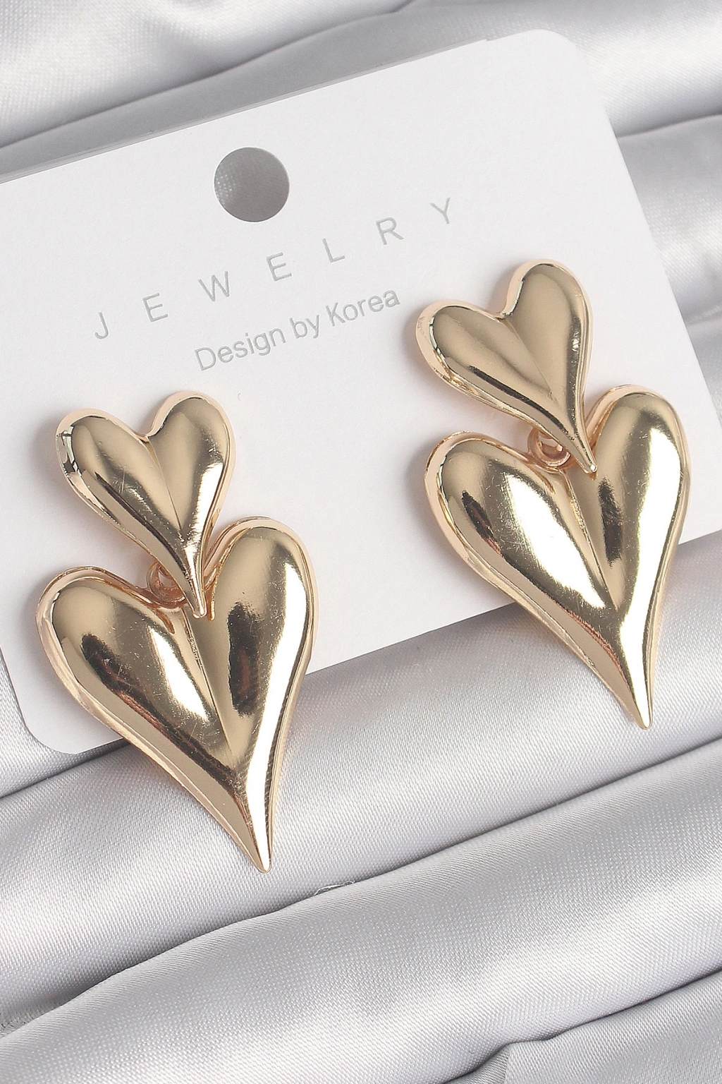Erb Pirinç Gold Renk Sallantı Kalp Model Kadın Küpe