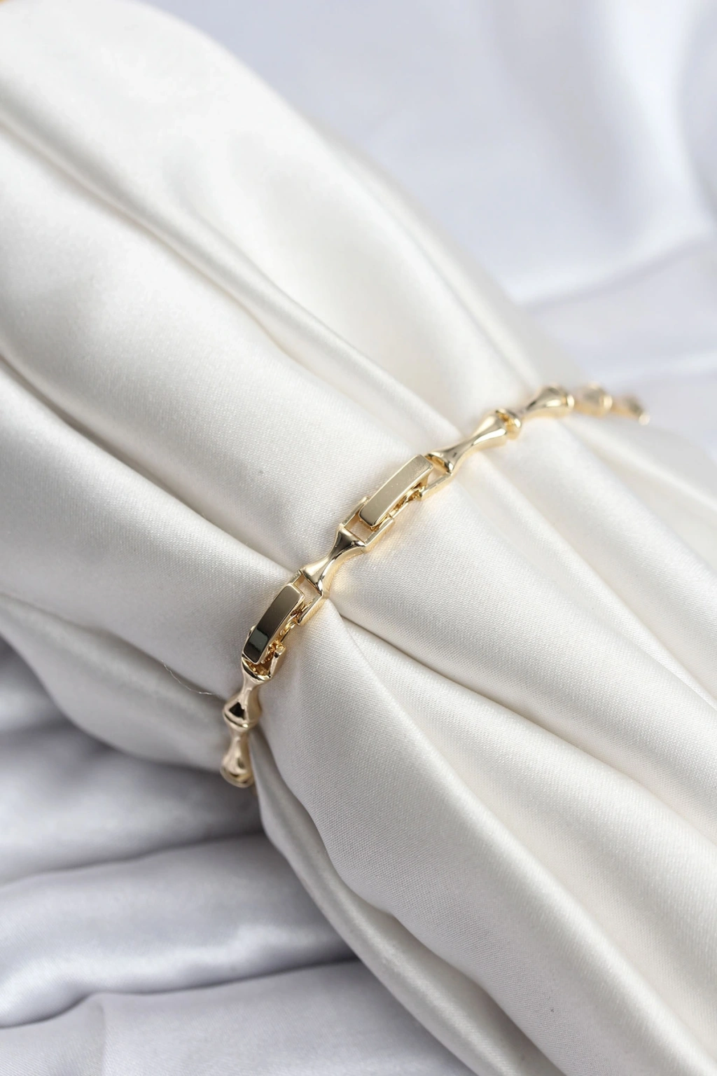 Erb Pirinç Gold Renk VIP Seri İnce Kemik Model Zirkon Taşlı Kadın Bileklik