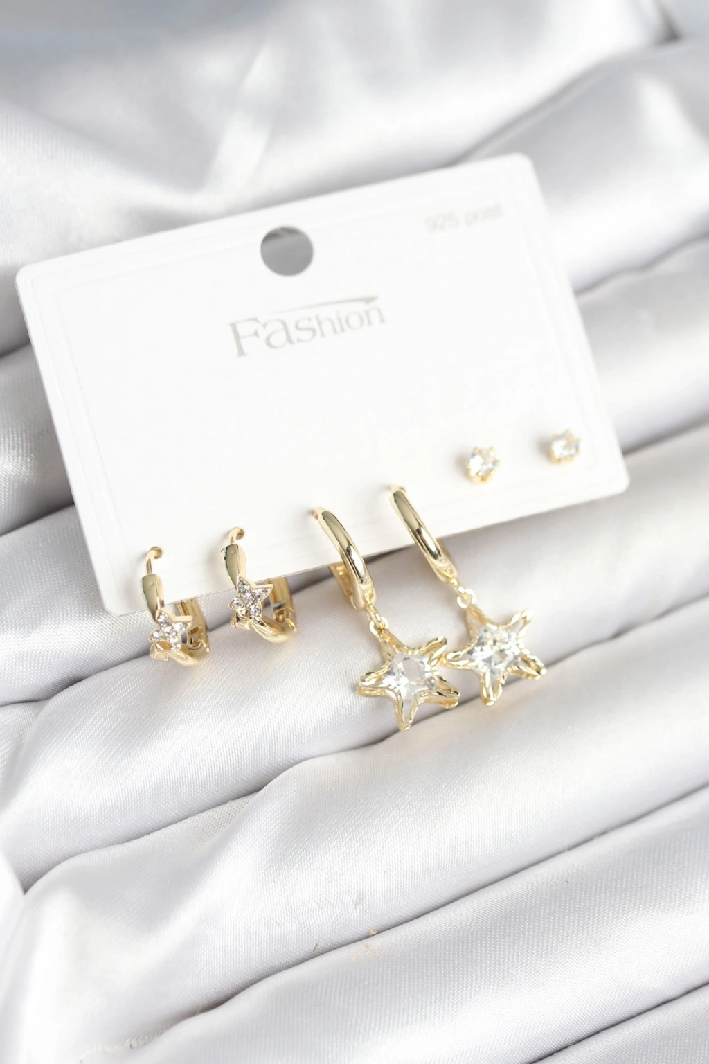 Erb Pirinç Gold Renk Yıldız Model 925 Gümüş Çivili Kadın Küpe Seti