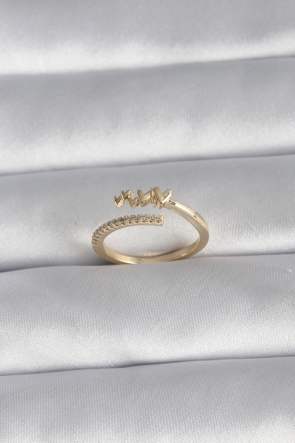Erb Pirinç Gold Renk Zirkon Taş Detay Kalp Model Kadın Yüzük