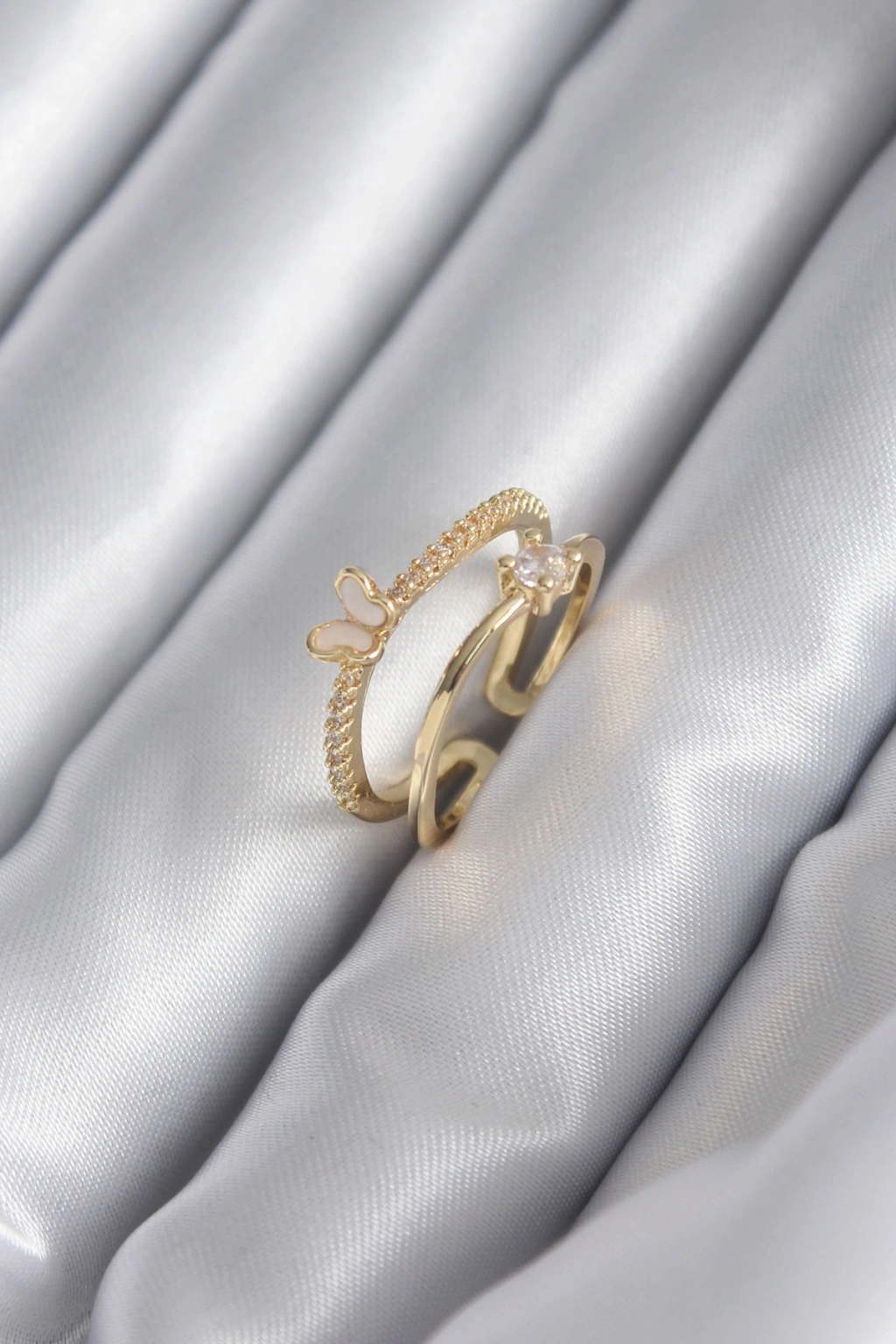 Erb Pirinç Gold Renk Zirkon Taş Detay Kelebek Model Kadın Yüzük