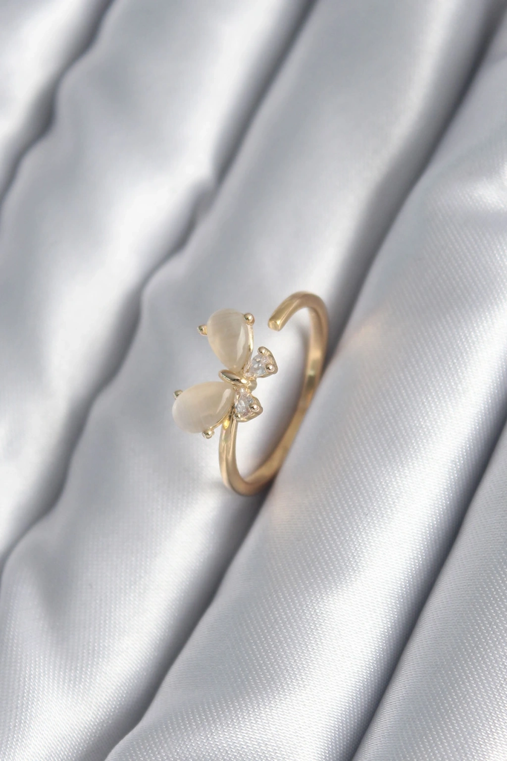 Erb Pirinç Gold Renk Zirkon Taş Detay Kelebek Model Kadın Yüzük