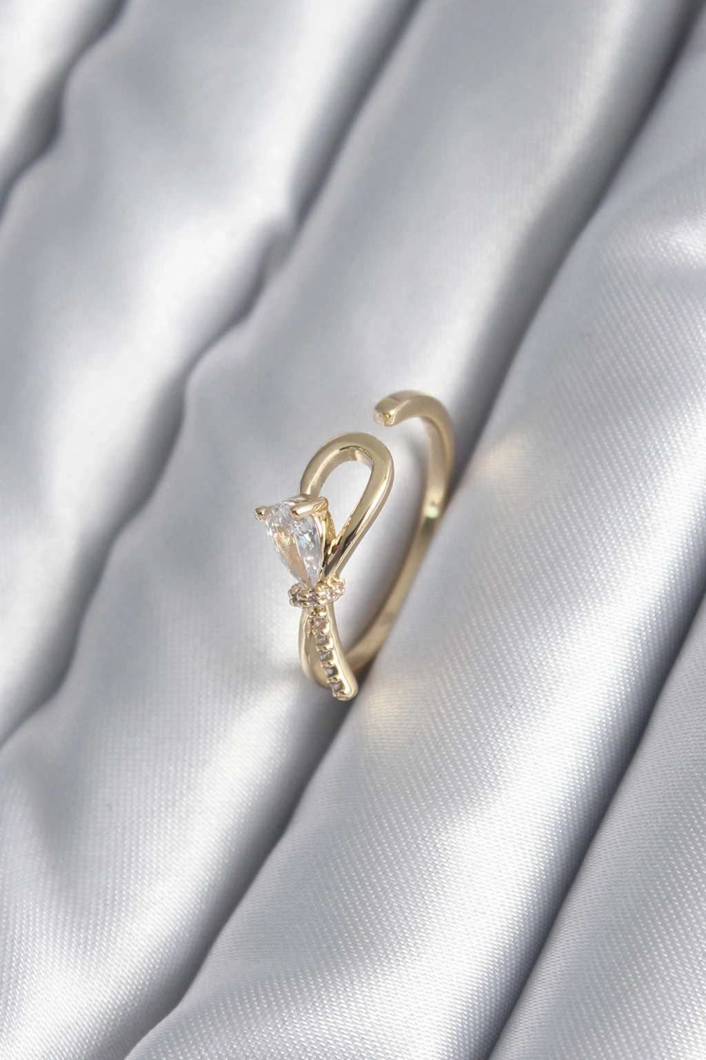 Erb Pirinç Gold Renk Zirkon Taş Detay Kurdele Model Kadın Yüzük