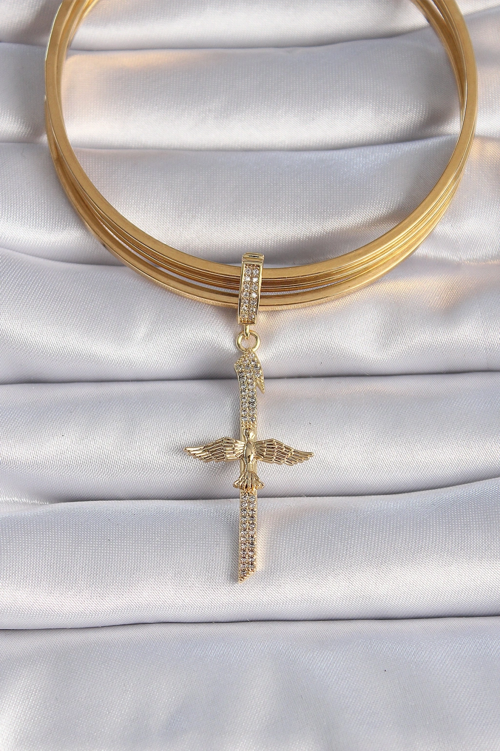 Erb Pirinç Gold Renk Zirkon Taş Detaylı Elif Model Anka Kuşu Figür Ajda Charm