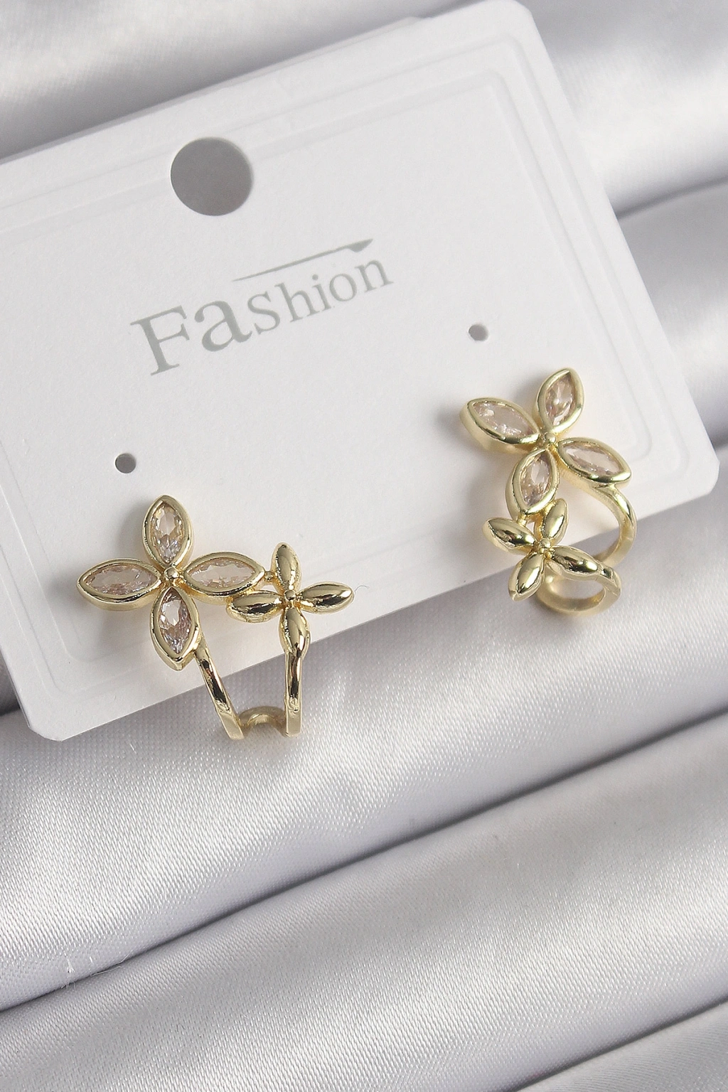 Erb Pirinç Gold Renk Zirkon Taşlı 2'Li Çiçek Model Kadın Küpe
