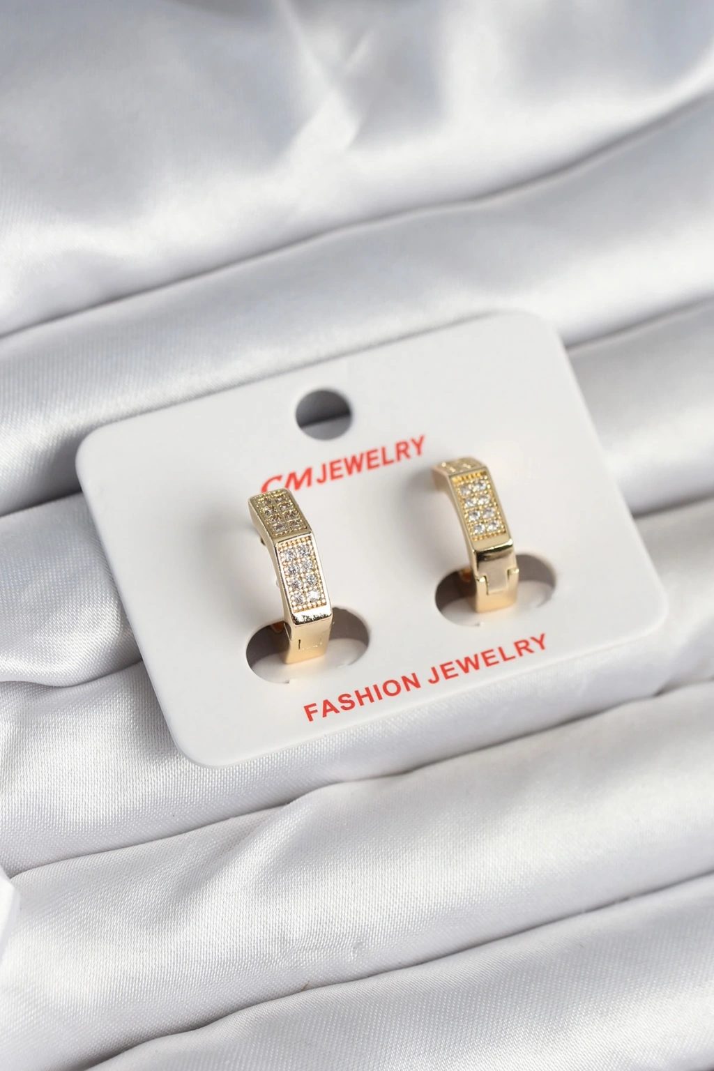 Erb Pirinç Gold Renk Zirkon Taşlı Altıgen Kadın Küpe