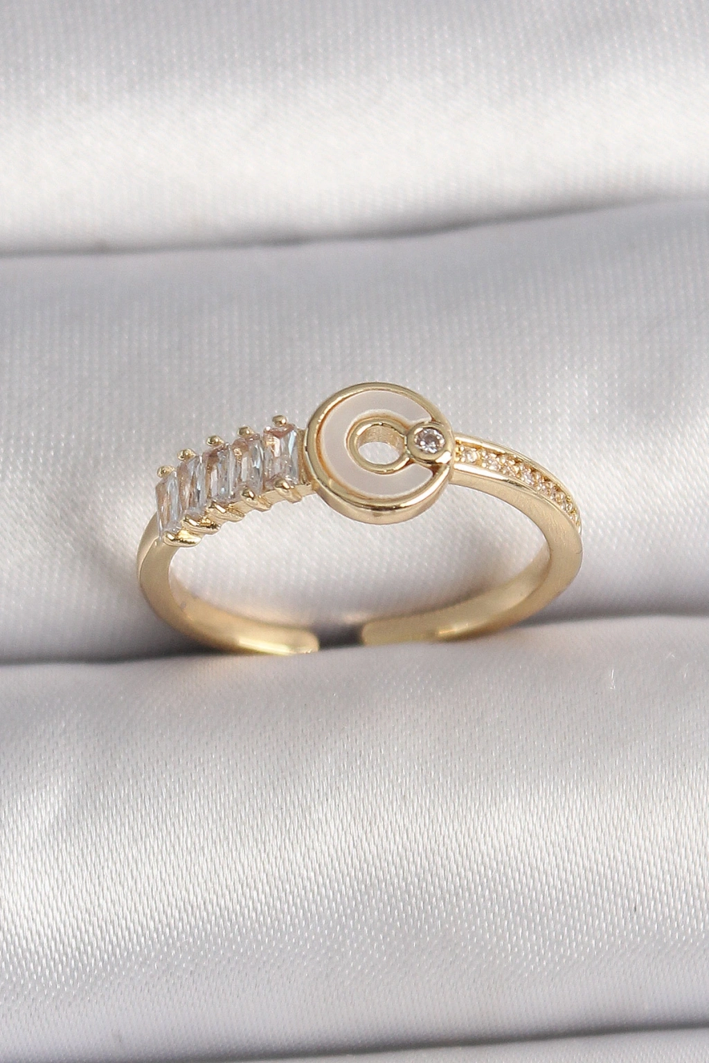 Erb Pirinç Gold Renk Zirkon Taşlı Ayarlanabilir Kadın Yüzük